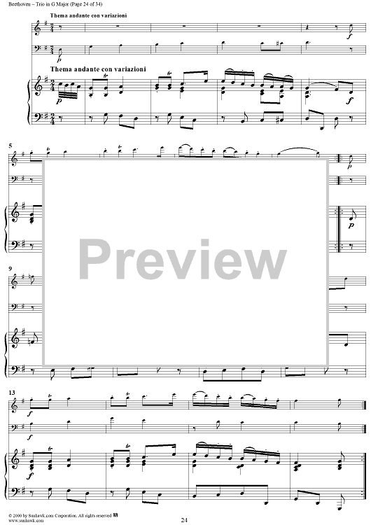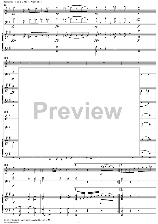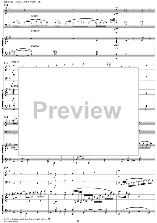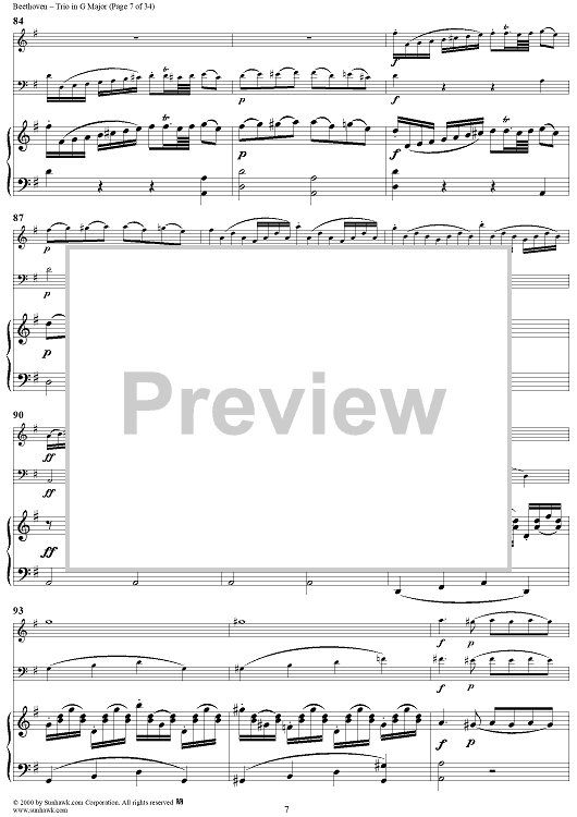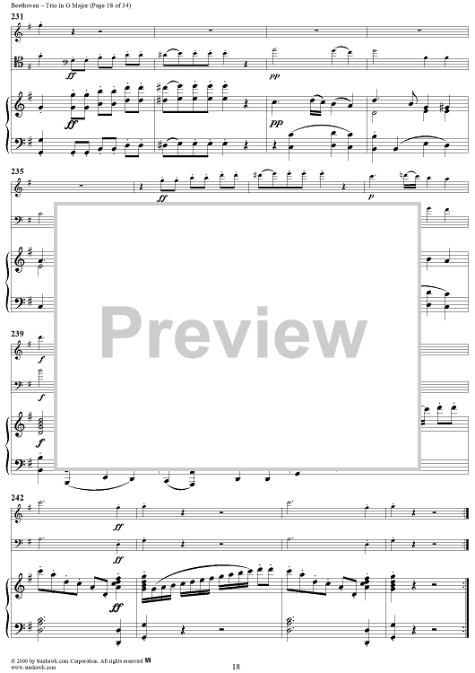 "Piano Trio in G Major WoO 37 - Piano" Sheet Music by Ludwig van Beethoven