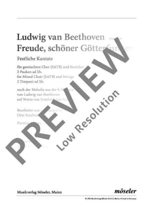 Digital Sheet Music for Praise to joy, the God descended - Score by Ludwig van Beethoven, Otto Kaufmann scored for Mixed Choir (satb) And Strings; Timpani Ad Libitum; id:493013