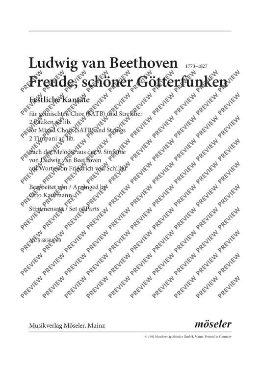 Digital Sheet Music for Praise to joy, the God descended - Set of Parts by Ludwig van Beethoven, Otto Kaufmann scored for Mixed Choir (satb) And Strings; Timpani Ad Libitum; id:505445