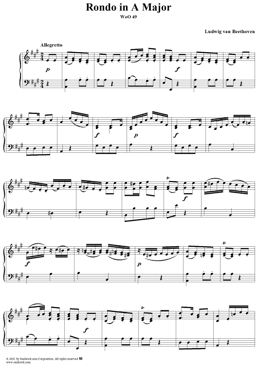 Digital Sheet Music for Rondo in A Major, WoO 49 by Ludwig van Beethoven scored for Piano Solo; id:275293