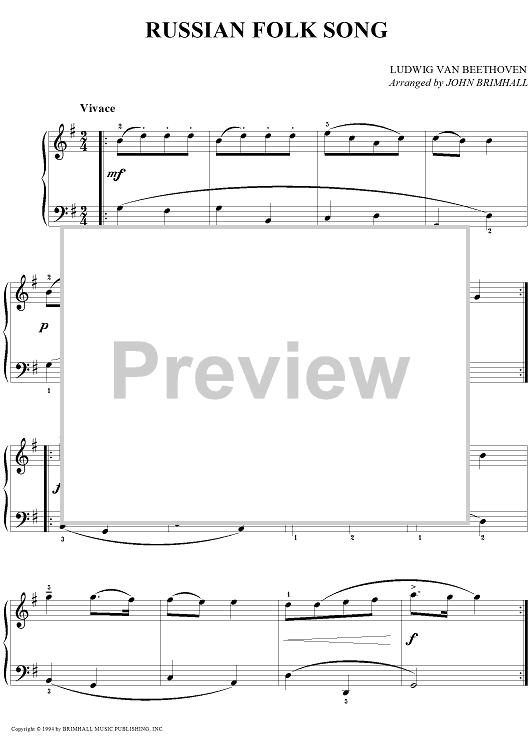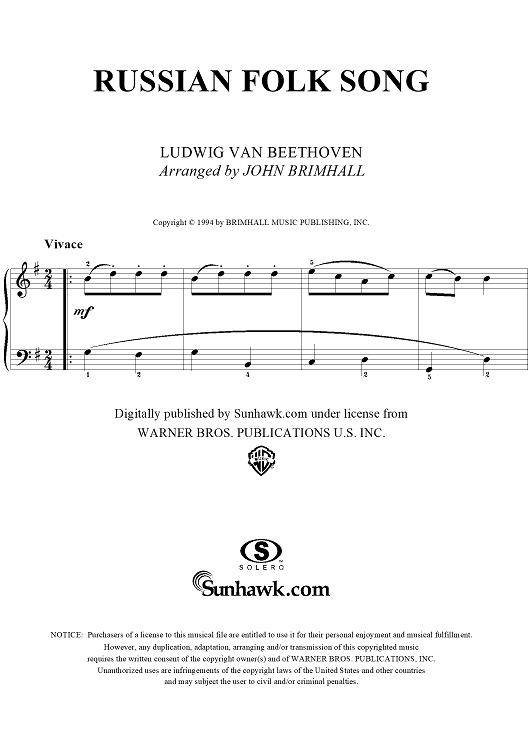 Digital Sheet Music for Russian Folk Song by Ludwig van Beethoven, John Brimhall scored for Easy Piano; id:275025