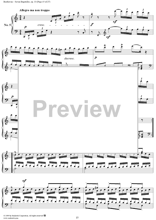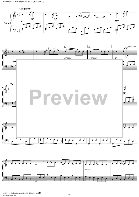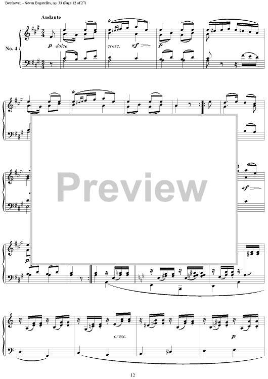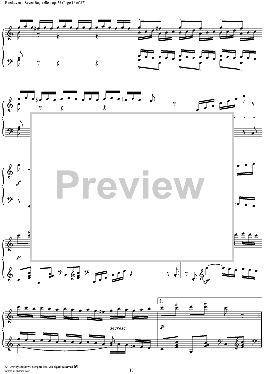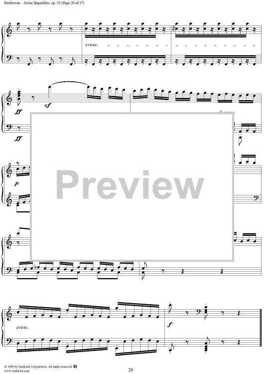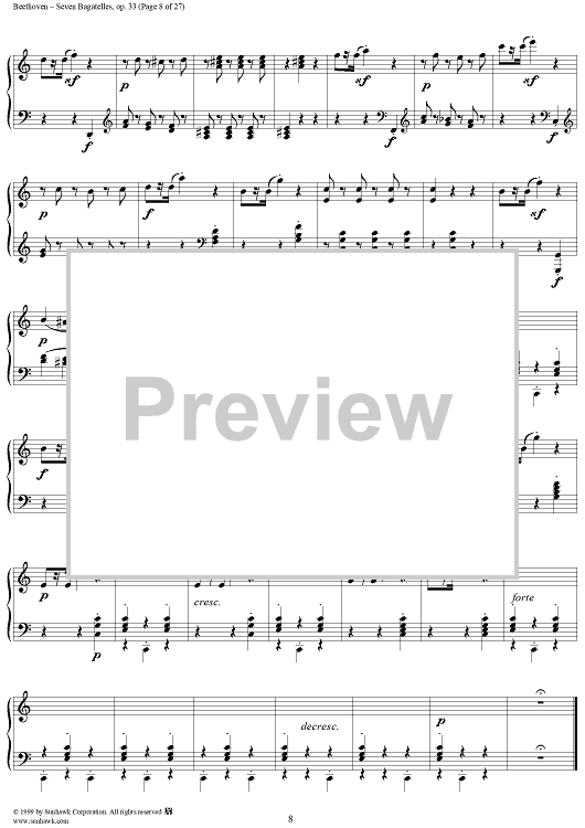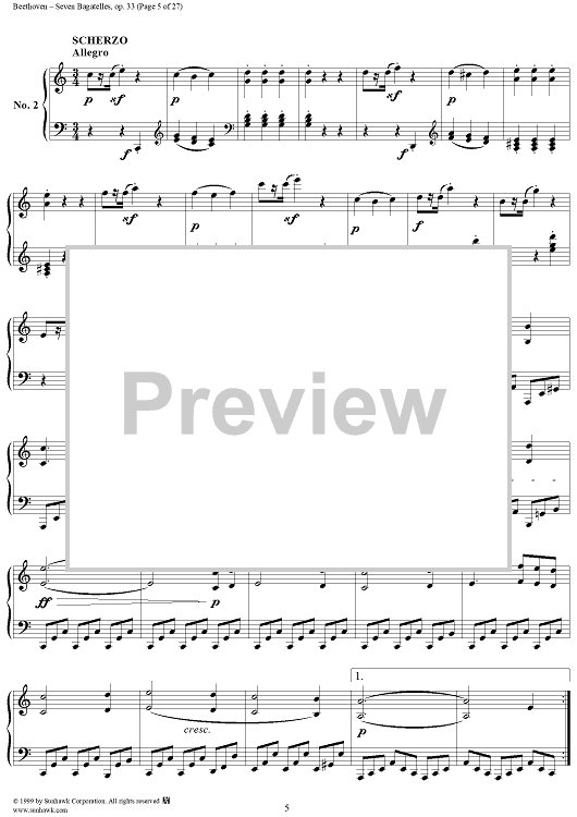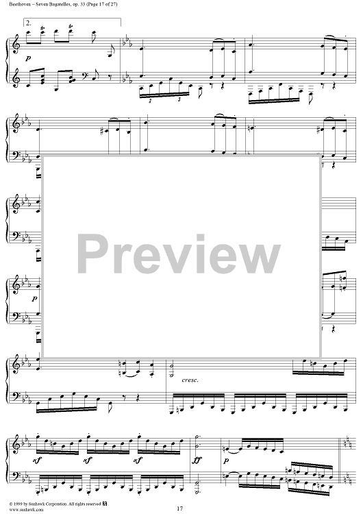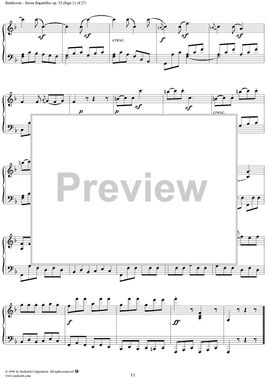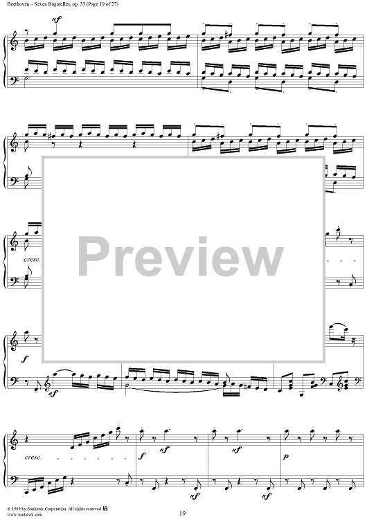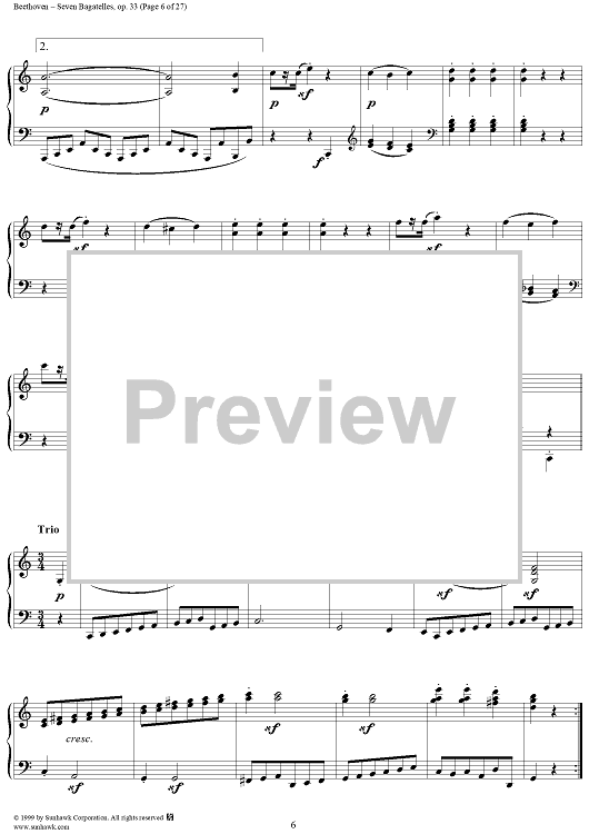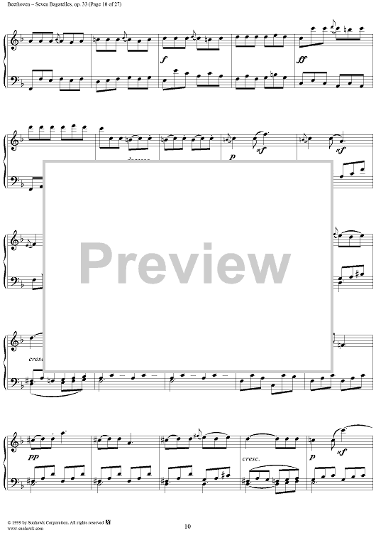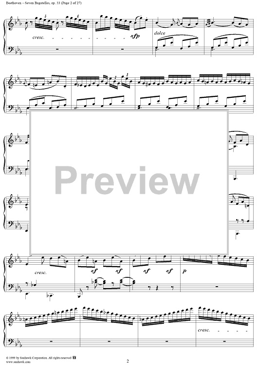 Digital Sheet Music for Seven Bagatelles, Op. 33 by Ludwig van Beethoven scored for Piano Solo; id:267468