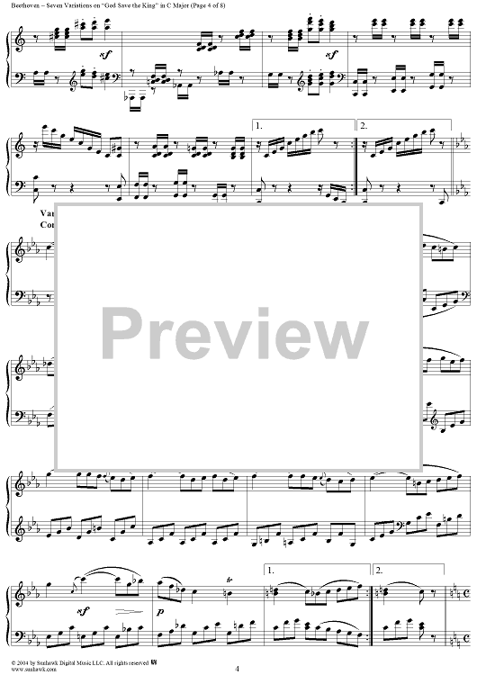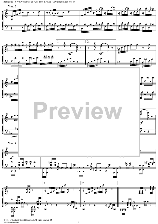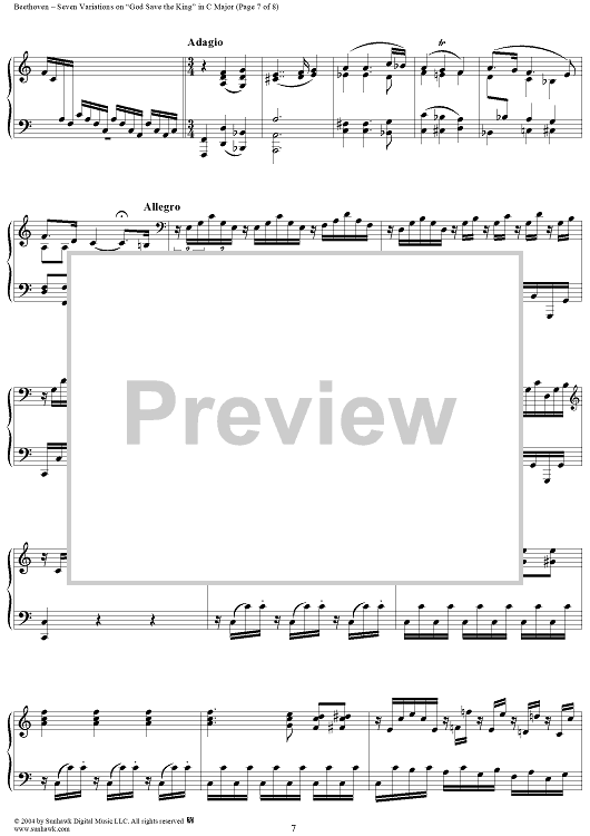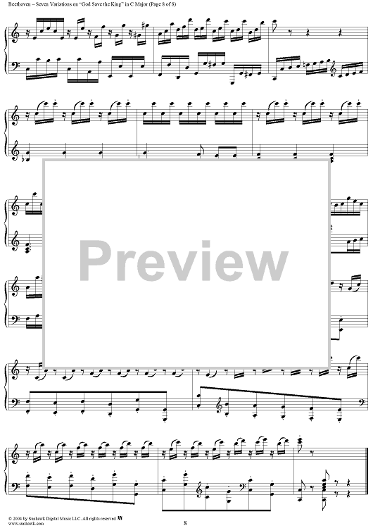 Digital Sheet Music for Seven Variations on "God Save The King" in C Major, WoO 78 by Ludwig van Beethoven scored for Piano Solo; id:241992