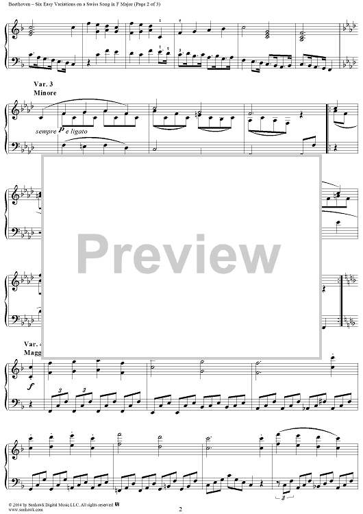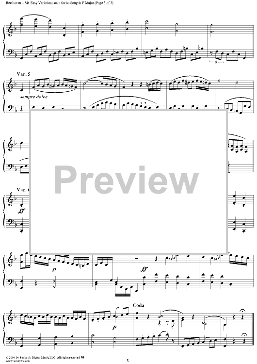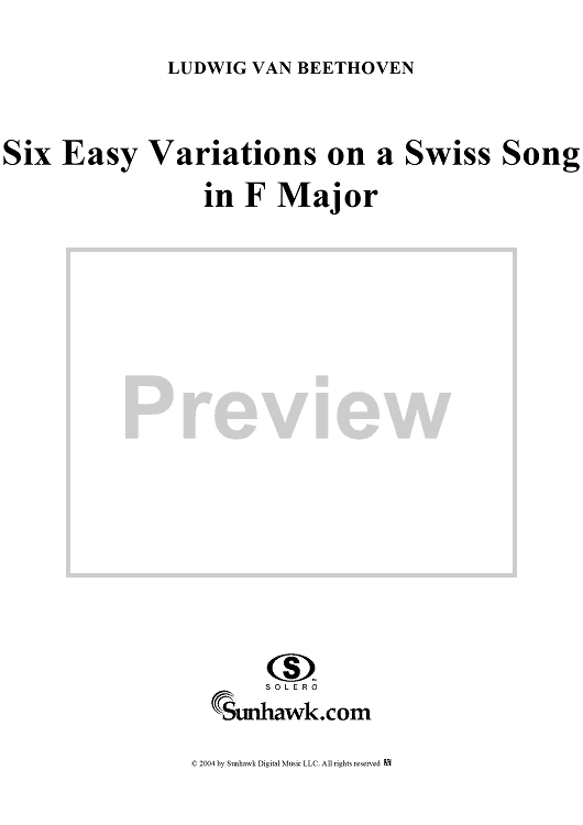 Digital Sheet Music for Six Easy Variations on a Swiss Song in F Major, WoO 64 by Ludwig van Beethoven scored for Piano Solo; id:241991