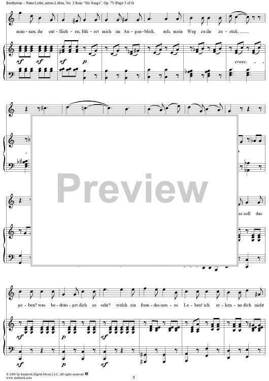 Digital Sheet Music for Six Songs, Op. 75, No. 2: Neue Liebe, neues Leben by Ludwig van Beethoven, Johann Wolfgang von Goethe scored for Voice/Piano; id:315421