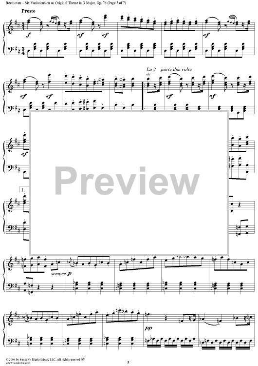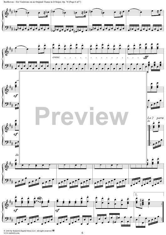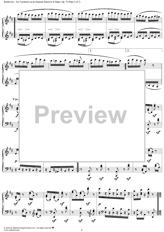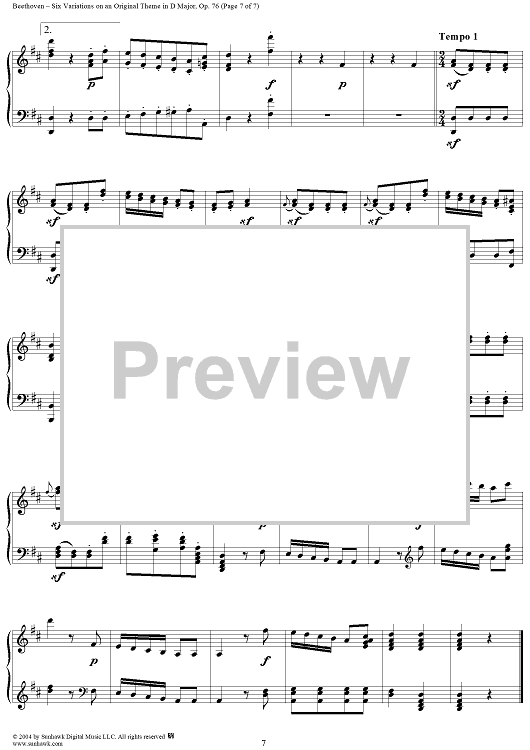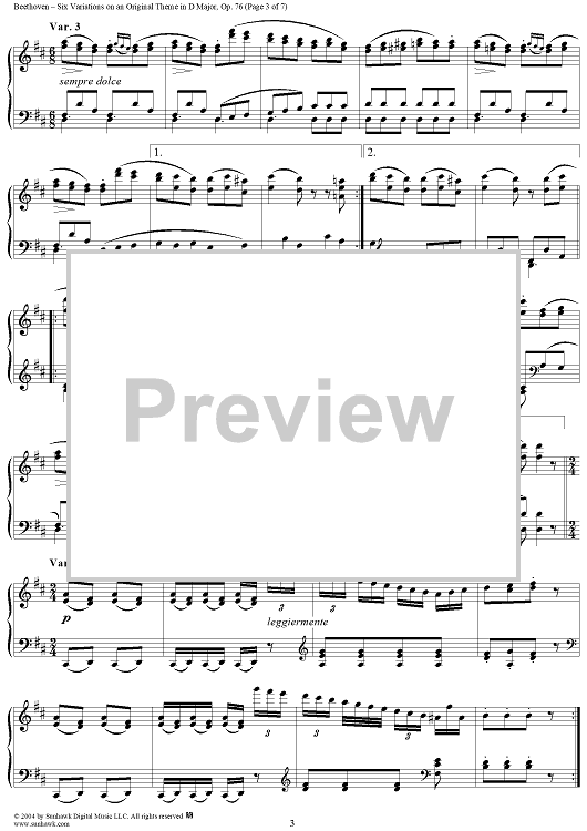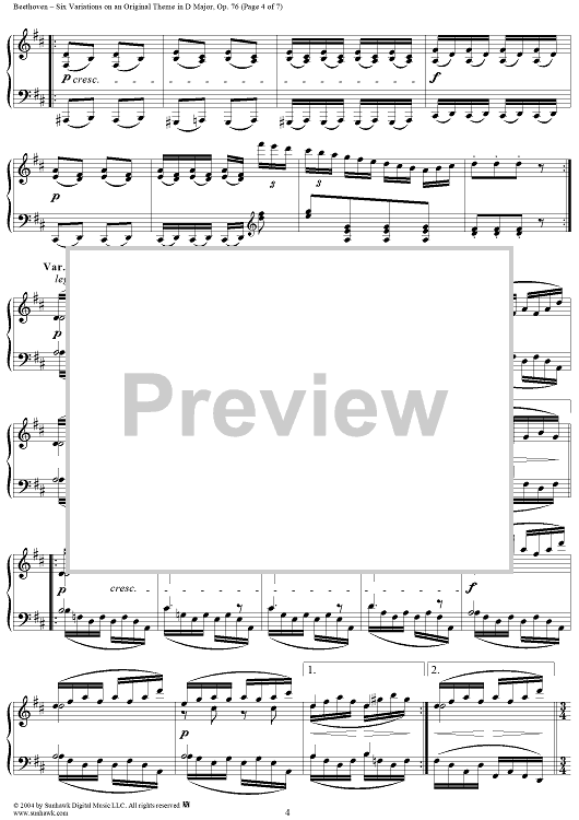 Digital Sheet Music for Six Variations on an Original Theme in D Major, Op. 76 by Ludwig van Beethoven scored for Piano Solo; id:241984