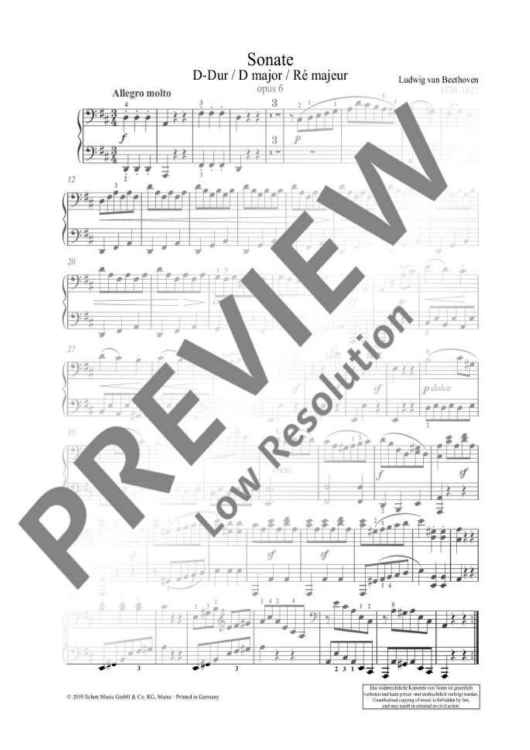 "Sonata facile D Major in D major" Sheet Music by Ludwig van Beethoven