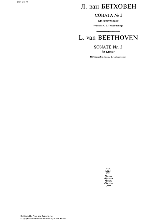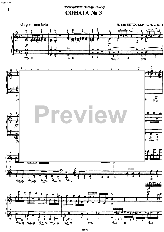 "Sonata No. 3 C Major Op. 2 No. 3" Sheet Music by Ludwig van Beethoven