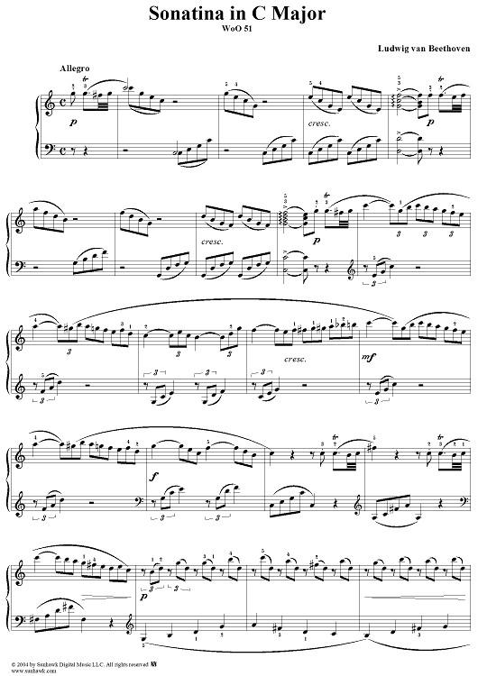 Digital Sheet Music for Sonatina in C Major, WoO 51 by Ludwig van Beethoven scored for Piano Solo; id:296335