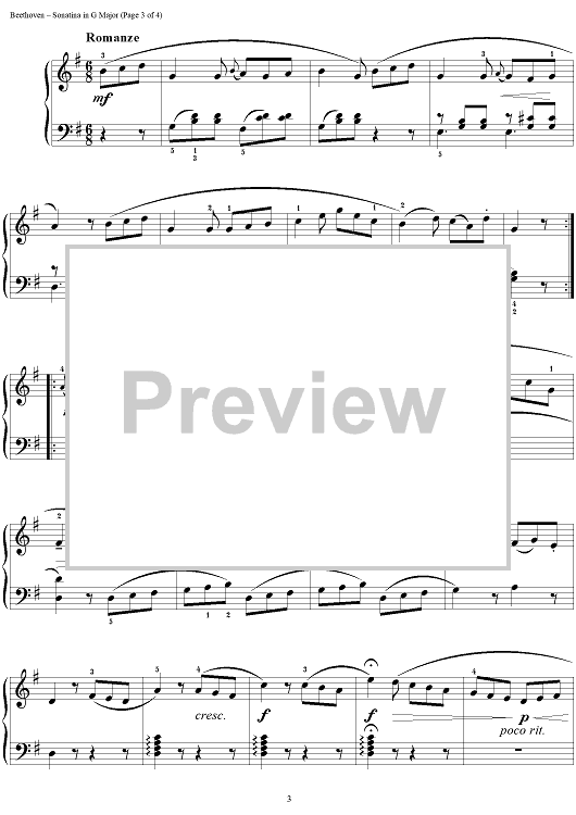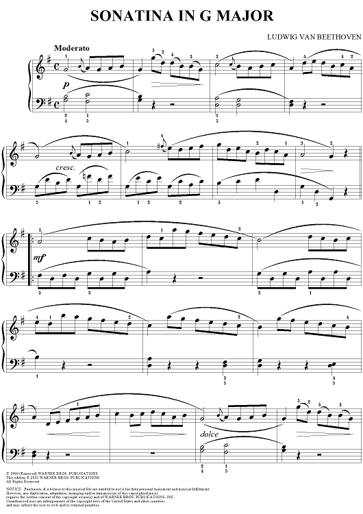 Digital Sheet Music for Sonatina in G Major by Ludwig van Beethoven scored for Easy Piano; id:286827