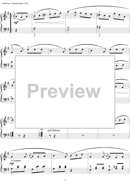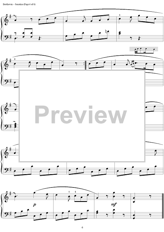 Digital Sheet Music for Sonatina by Ludwig van Beethoven scored for Easy Piano; id:284697