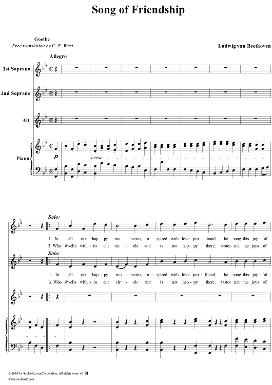 Digital Sheet Music for Song of Friendship by Ludwig van Beethoven, C. E. West scored for Voice/Piano; id:265736