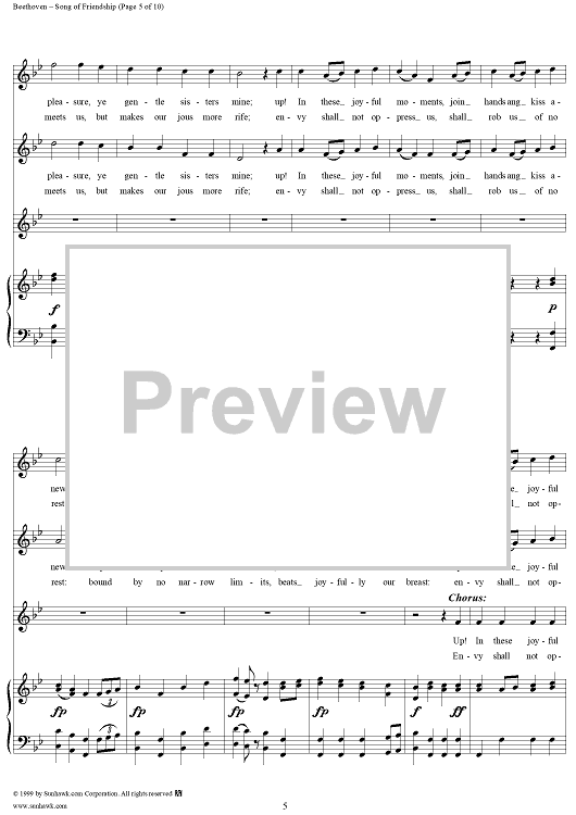 "Song of Friendship" Sheet Music by Ludwig van Beethoven