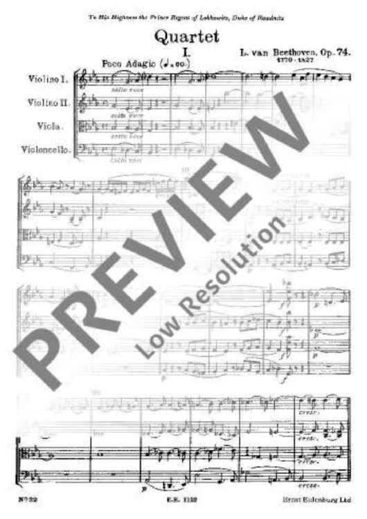 "String Quartet Eb major - Full Score" Sheet Music by Ludwig van Beethoven