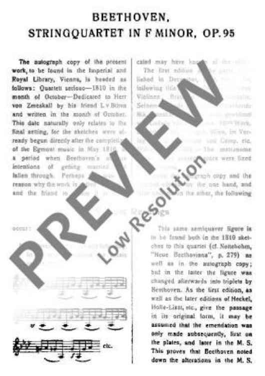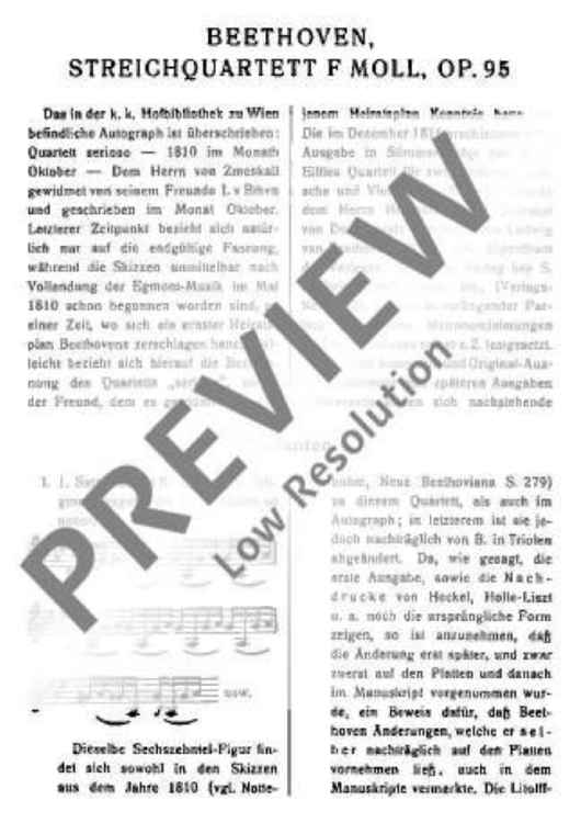 "String Quartet F minor - Full Score" Sheet Music by Ludwig van Beethoven