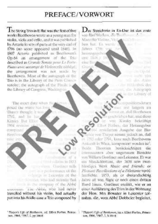 "String Trio Eb major - Full Score" Sheet Music by Ludwig van Beethoven
