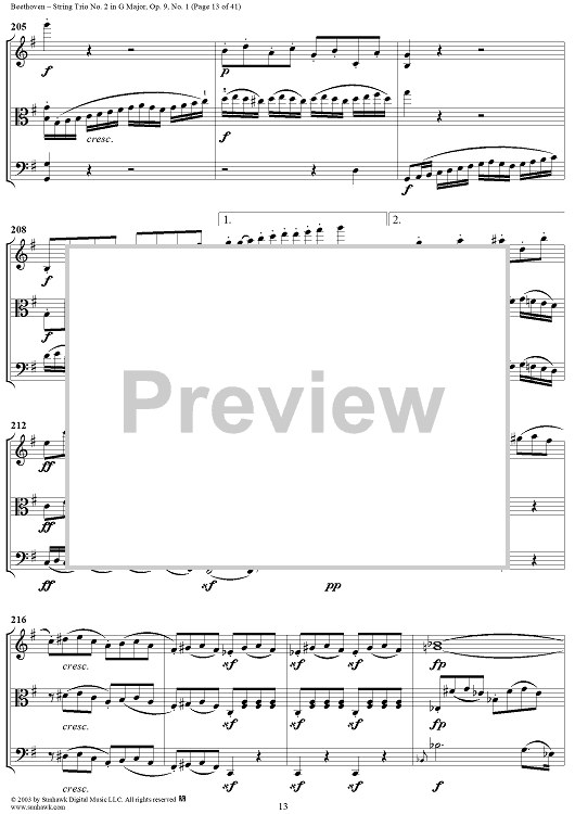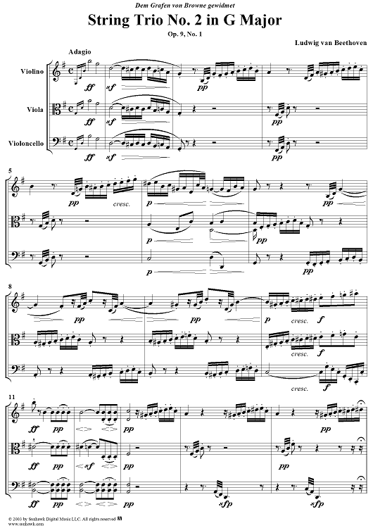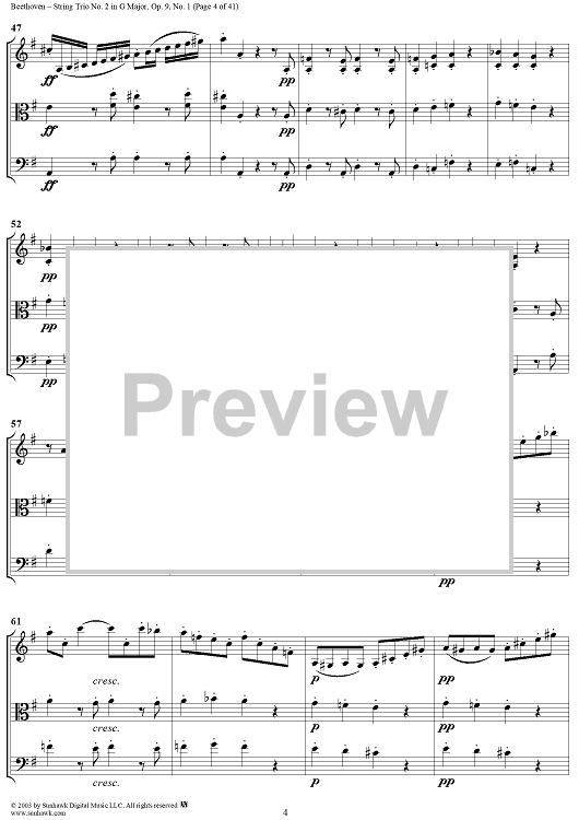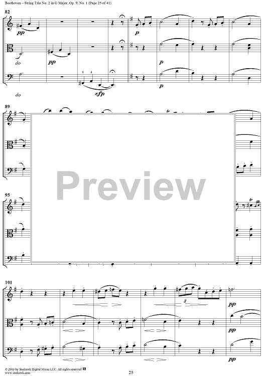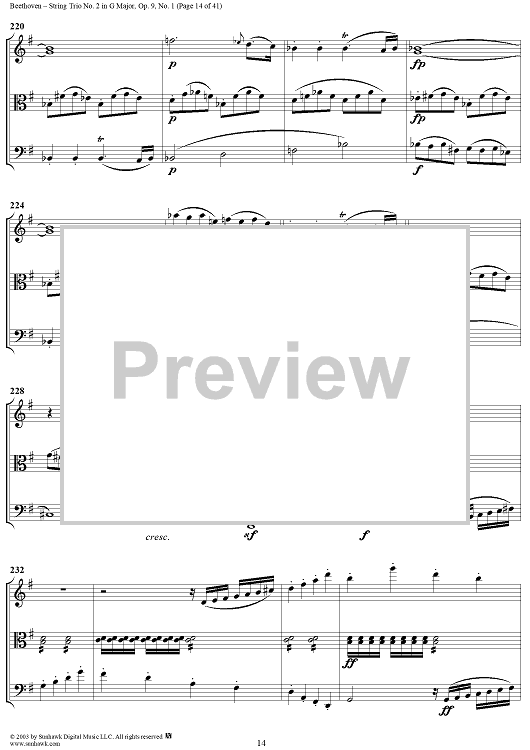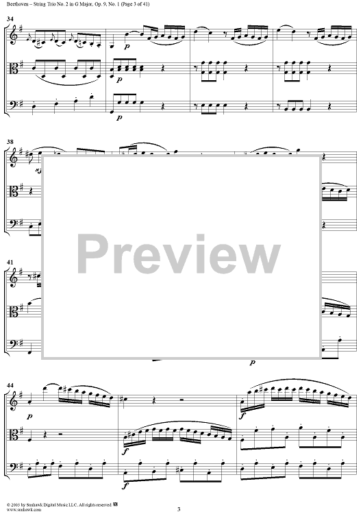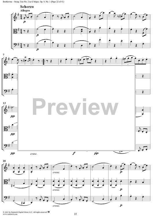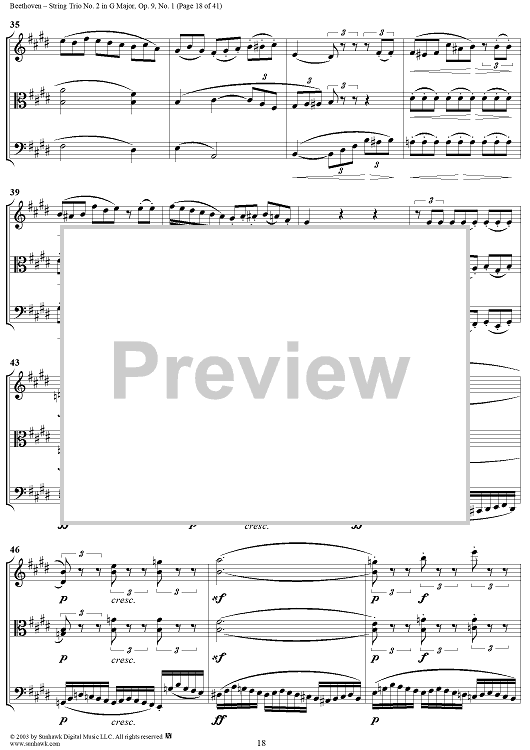 Digital Sheet Music for String Trio No. 2 in G Major, Op. 9, No. 1 - Score by Ludwig van Beethoven scored for String Trio; id:253910