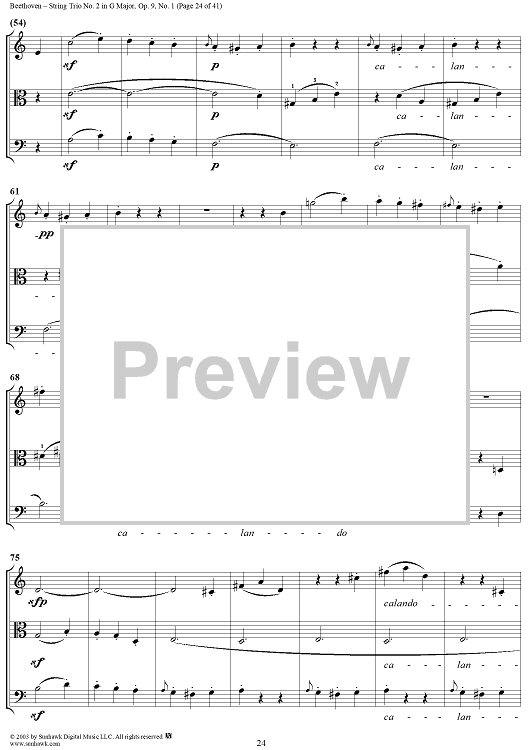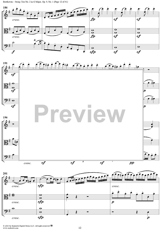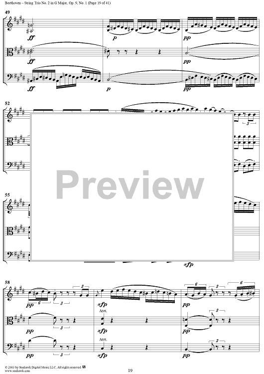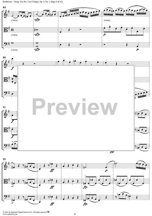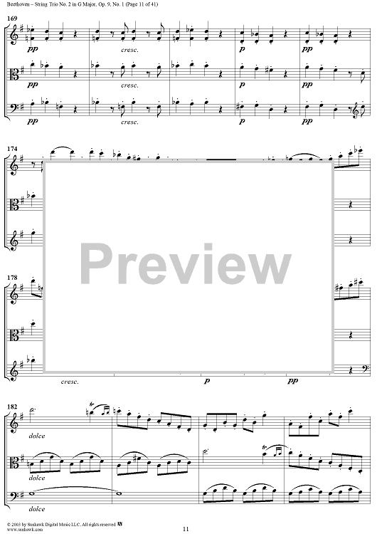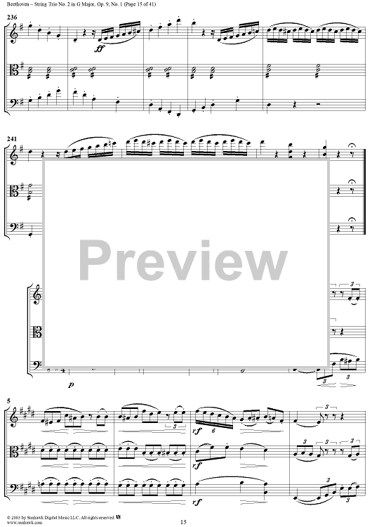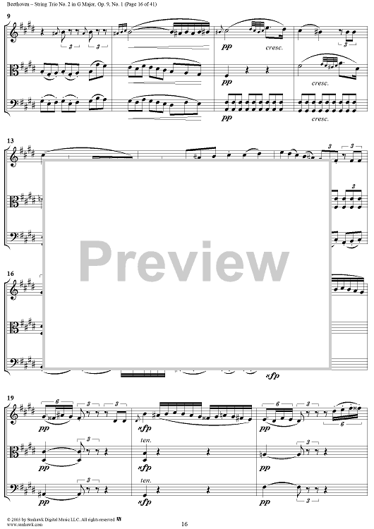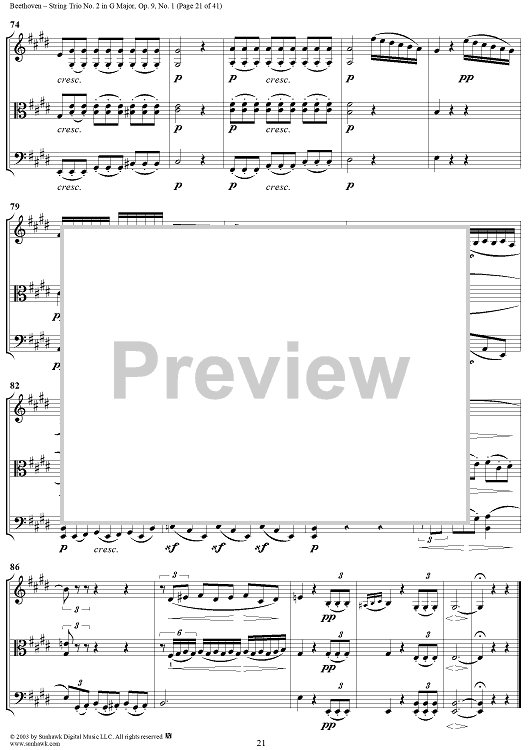 Digital Sheet Music for String Trio No. 2 in G Major, Op. 9, No. 1 - Score by Ludwig van Beethoven scored for String Trio; id:253910
