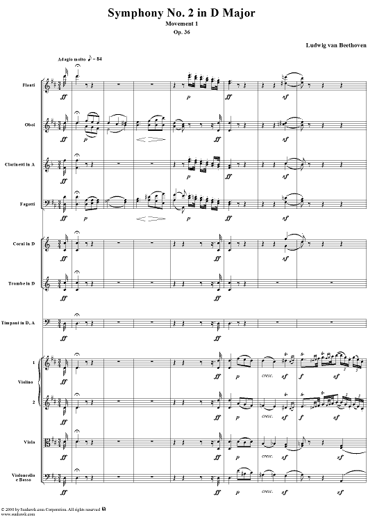 "Symphony No. 2, Movement 1 - Full Score" Sheet Music by Ludwig van Beethoven