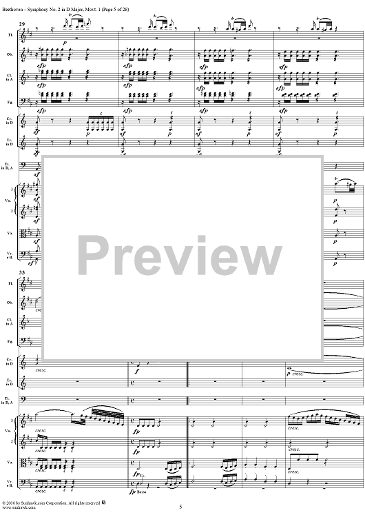 Digital Sheet Music for Symphony No. 2, Movement 1 - Full Score by Ludwig van Beethoven scored for Orchestra; id:271276