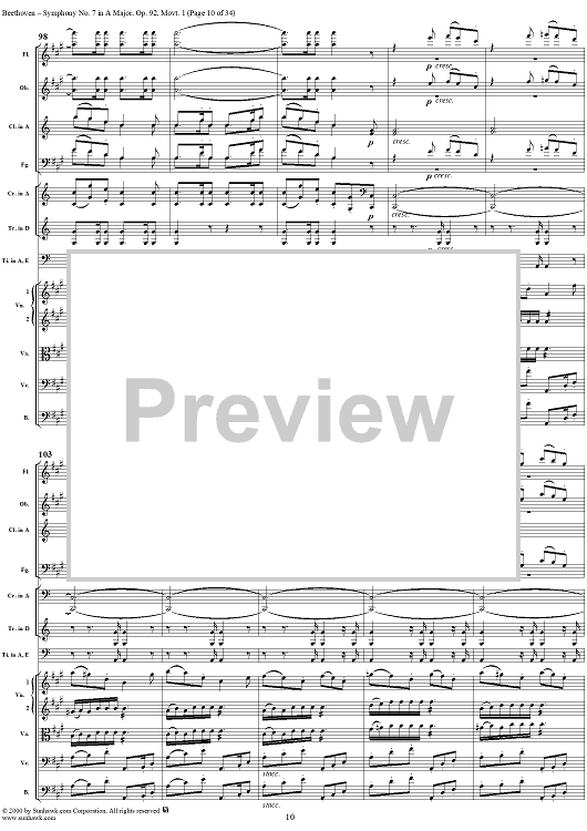 Digital Sheet Music for Symphony No. 7, Movement 1 - Full Score by Ludwig van Beethoven scored for Orchestra; id:260327