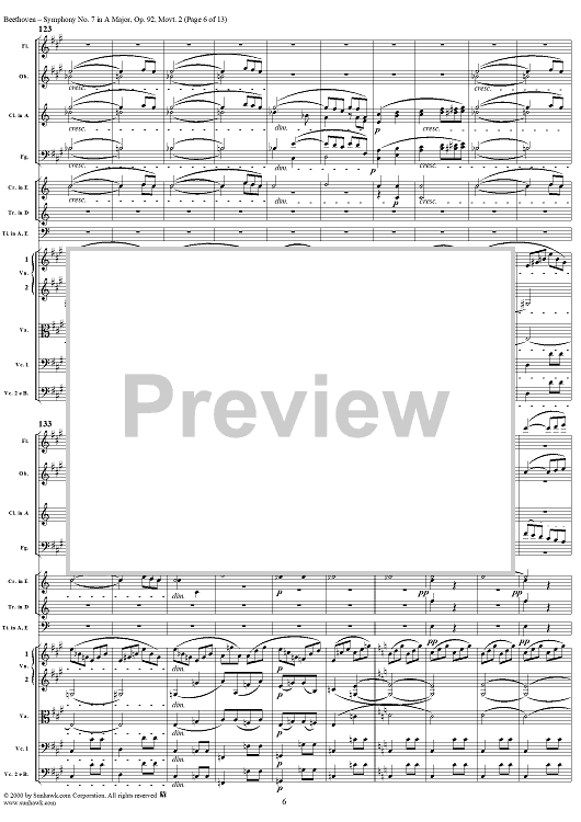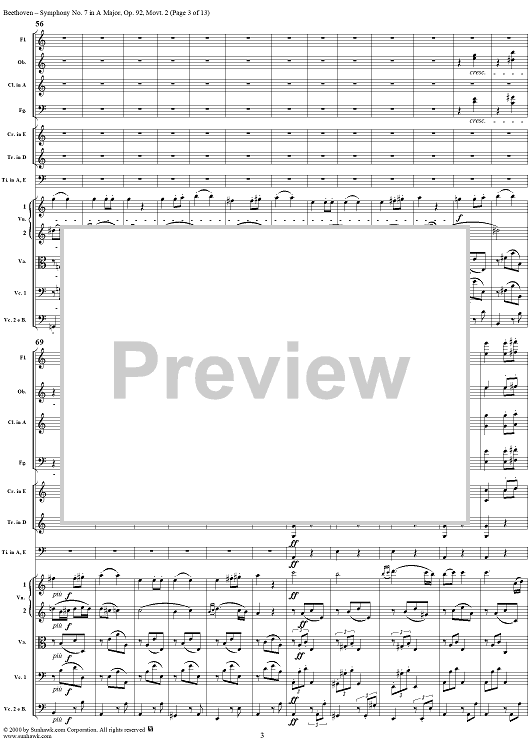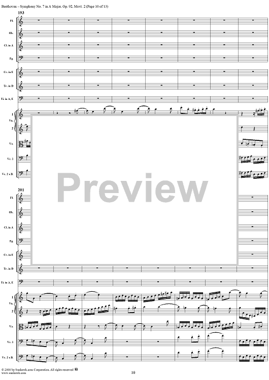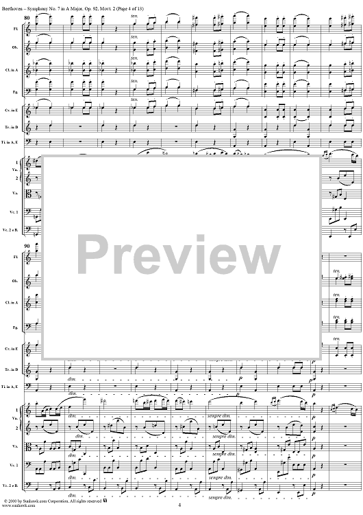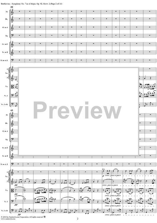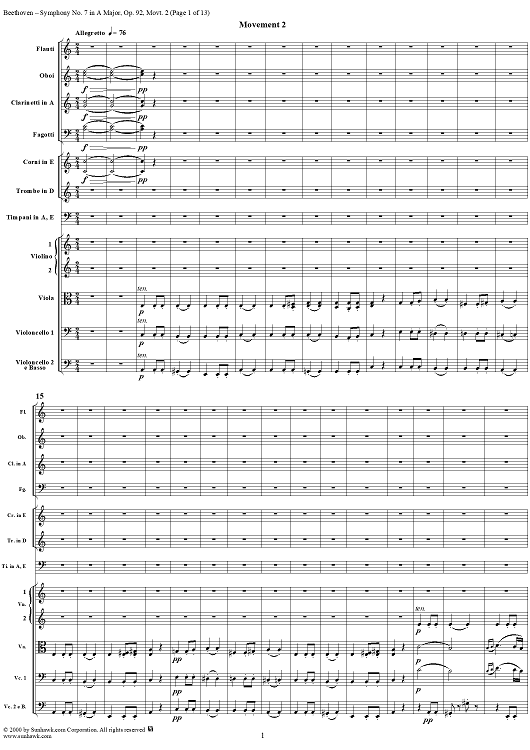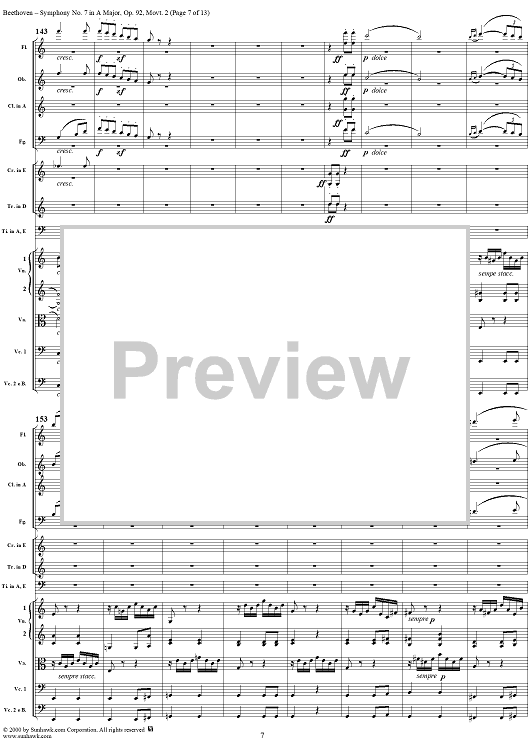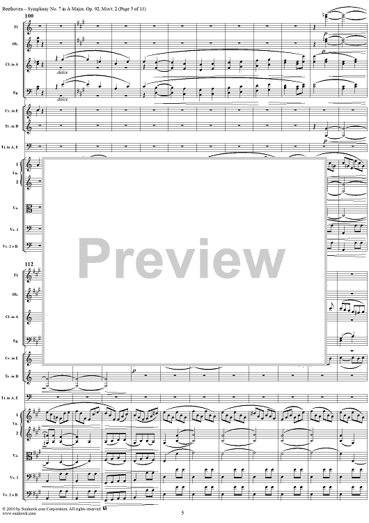Digital Sheet Music for Symphony No. 7, Movement 2 - Full Score by Ludwig van Beethoven scored for Orchestra; id:275273