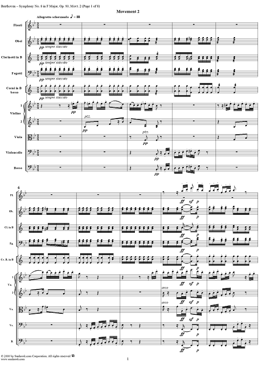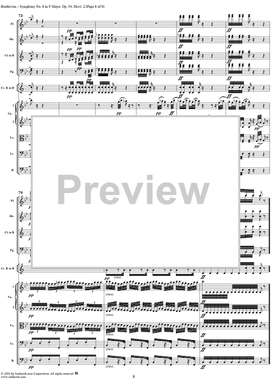 Digital Sheet Music for Symphony No. 8, Movement 2 - Full Score by Ludwig van Beethoven scored for Orchestra; id:275274