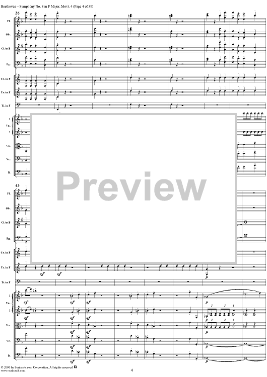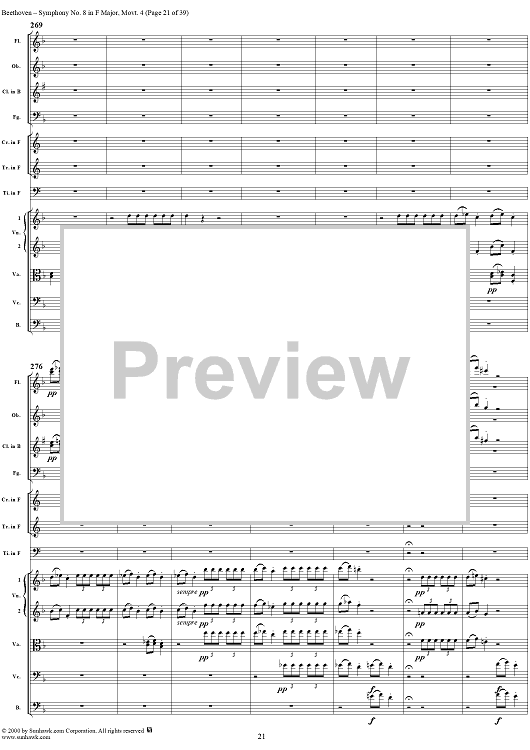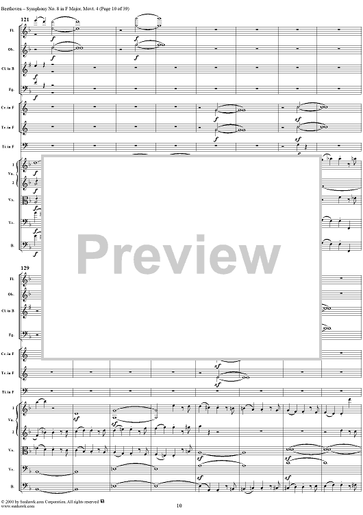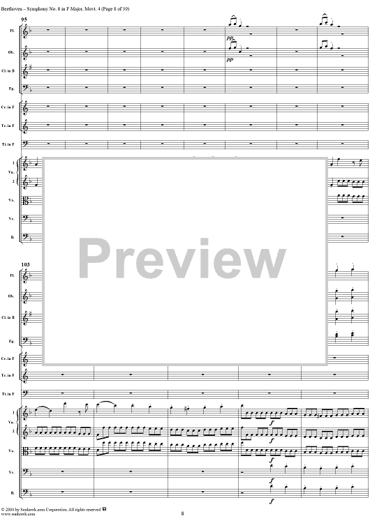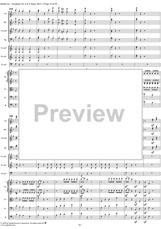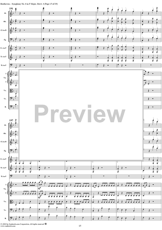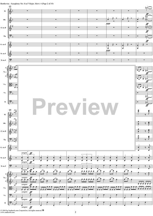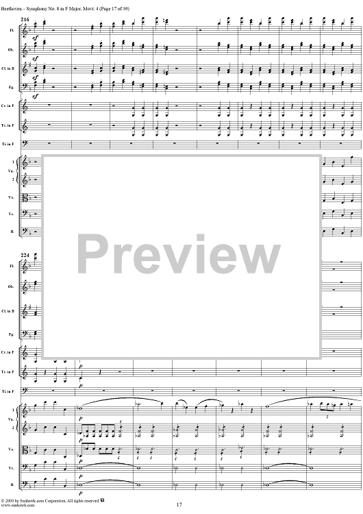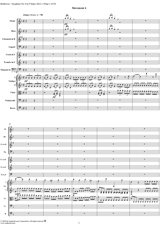 Digital Sheet Music for Symphony No. 8, Movement 4 - Full Score by Ludwig van Beethoven scored for Orchestra; id:275279