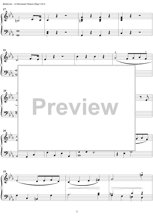 Digital Sheet Music for The 1st Movement Themes from Piano Concerto No. 3 in C Minor by Ludwig van Beethoven scored for Easy Piano; id:385888