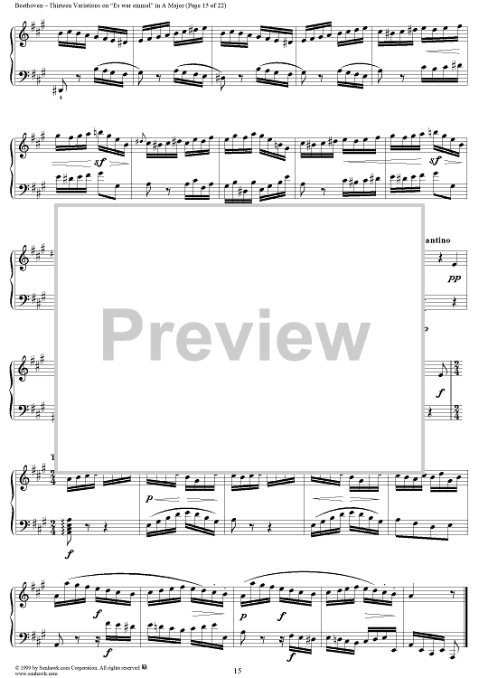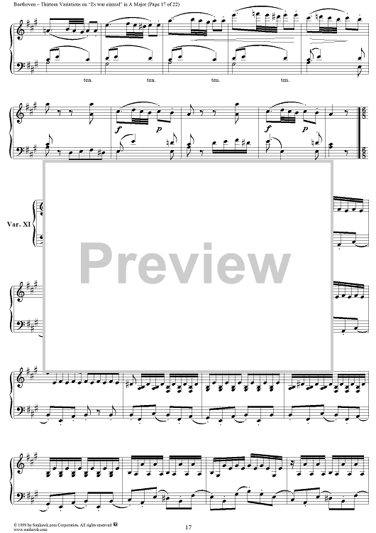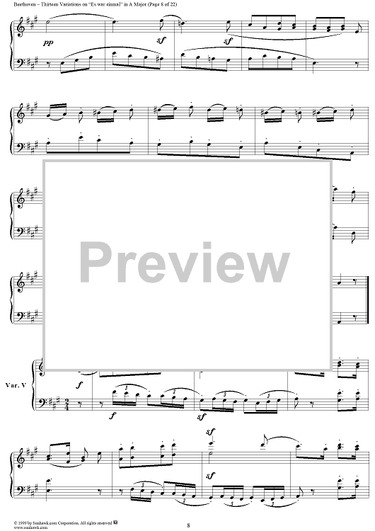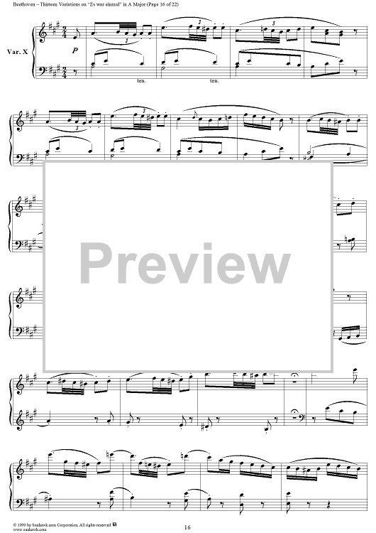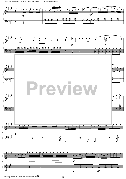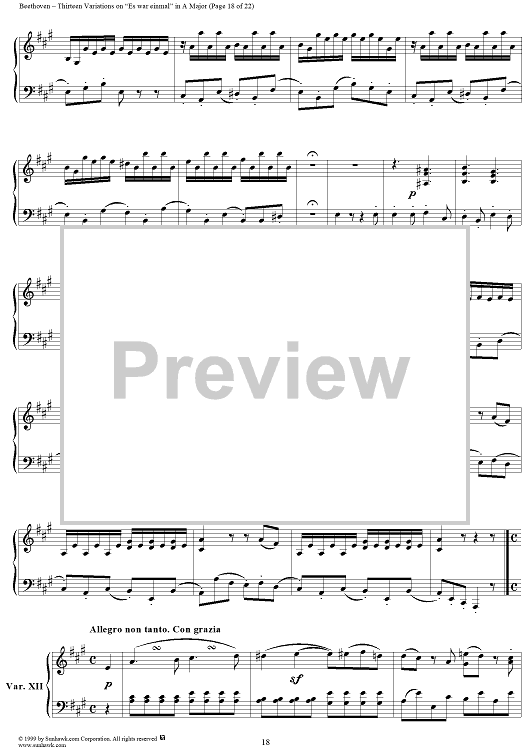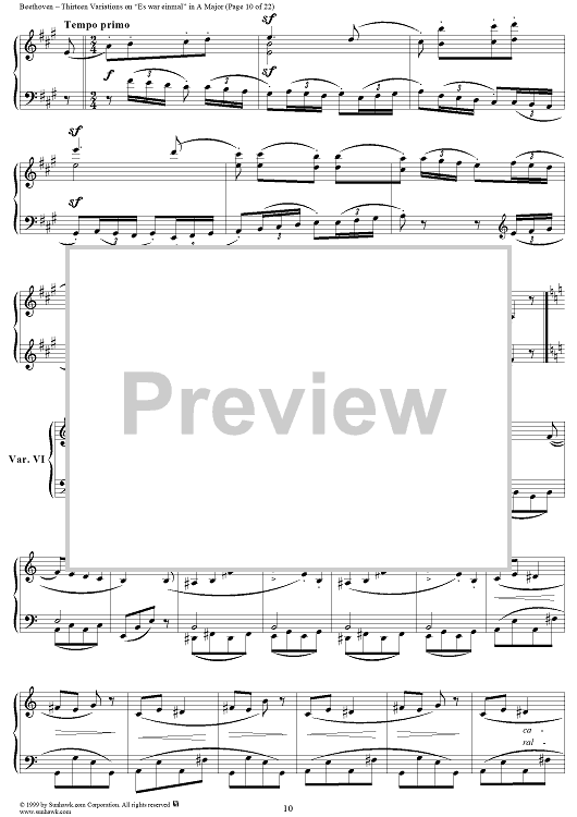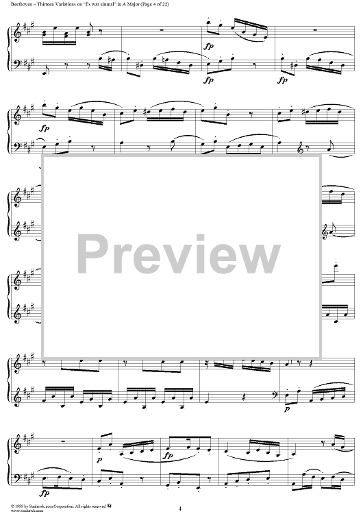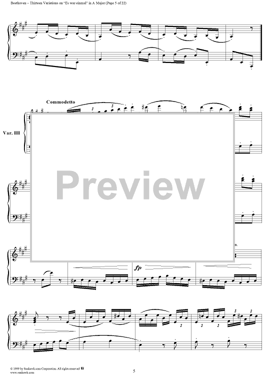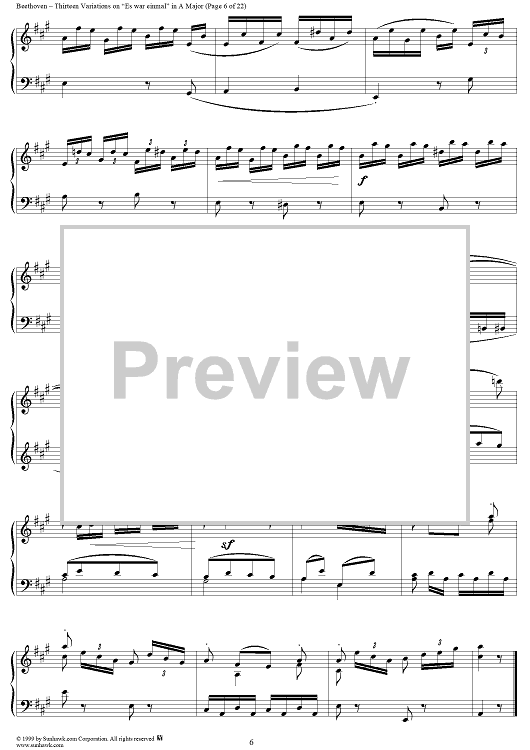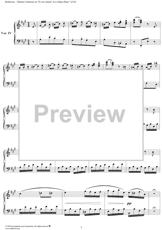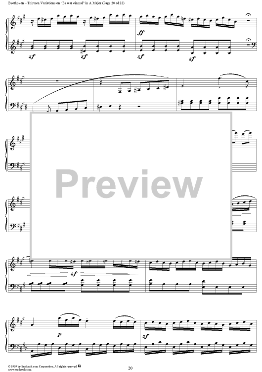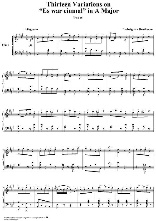 Digital Sheet Music for Thirteen Variations on arietta "Es war einmal" in A Major, WoO 66 by Ludwig van Beethoven scored for Piano Solo; id:262371