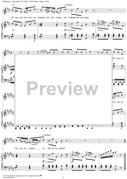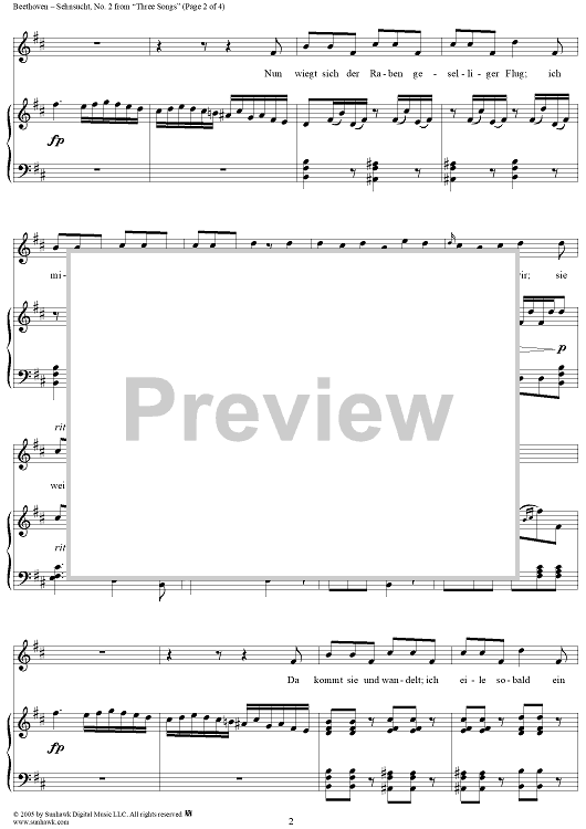 Digital Sheet Music for Three Songs, Op. 83, No. 2: Sehnsucht by Ludwig van Beethoven, Johann Wolfgang von Goethe scored for Voice/Piano; id:315416