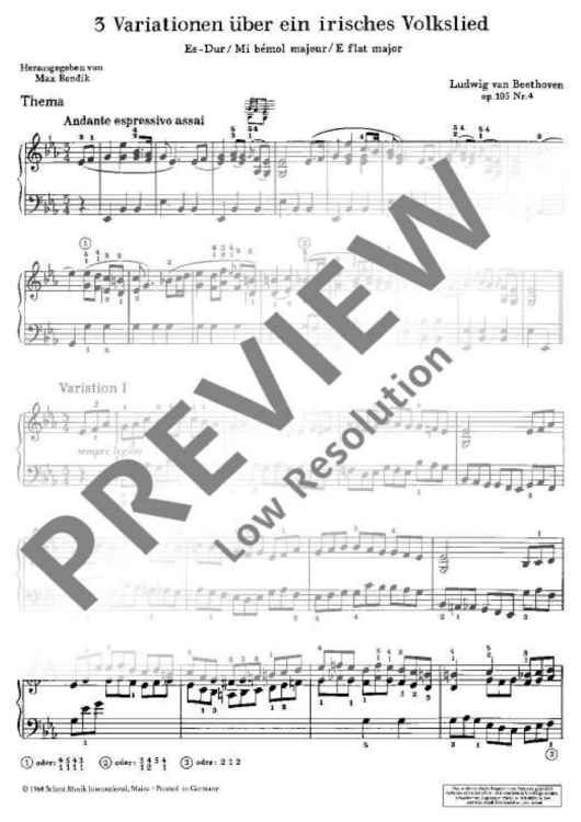 Digital Sheet Music for Three Variations on an Irish Folk Song E-flat major / Six Variations on an Austrian Folk Song C major by Ludwig van Beethoven scored for Piano; id:482496