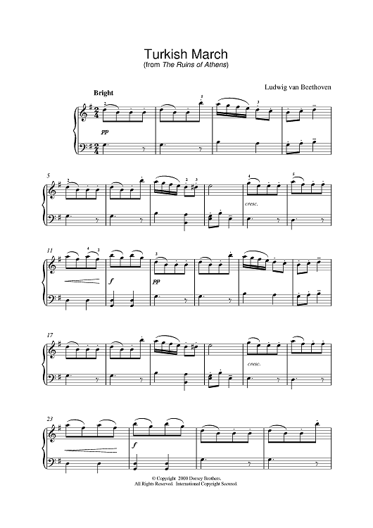 Digital Sheet Music for Turkish March by Ludwig van Beethoven scored for Piano; id:375810
