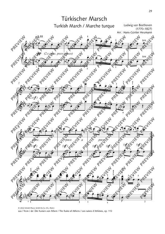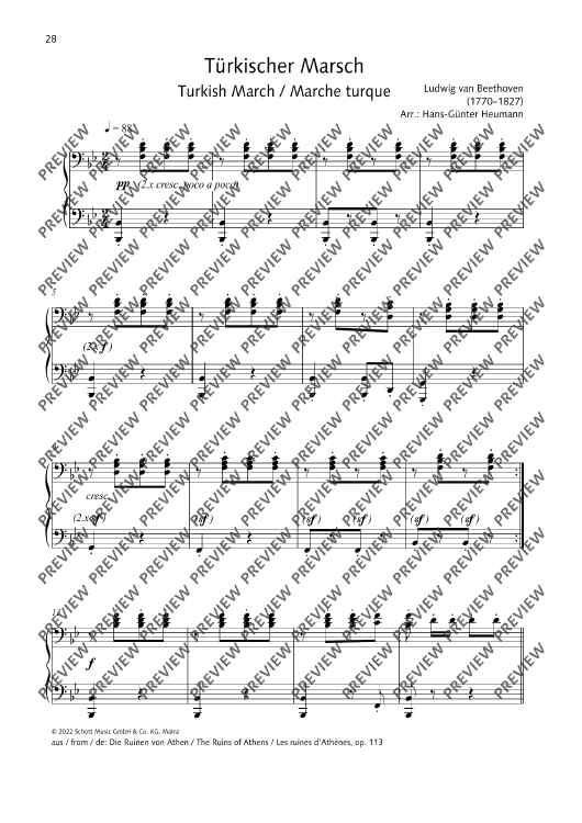 Digital Sheet Music for Turkish March by Ludwig van Beethoven, Hans-Guenter Heumann scored for Piano (4 Hands); id:497309