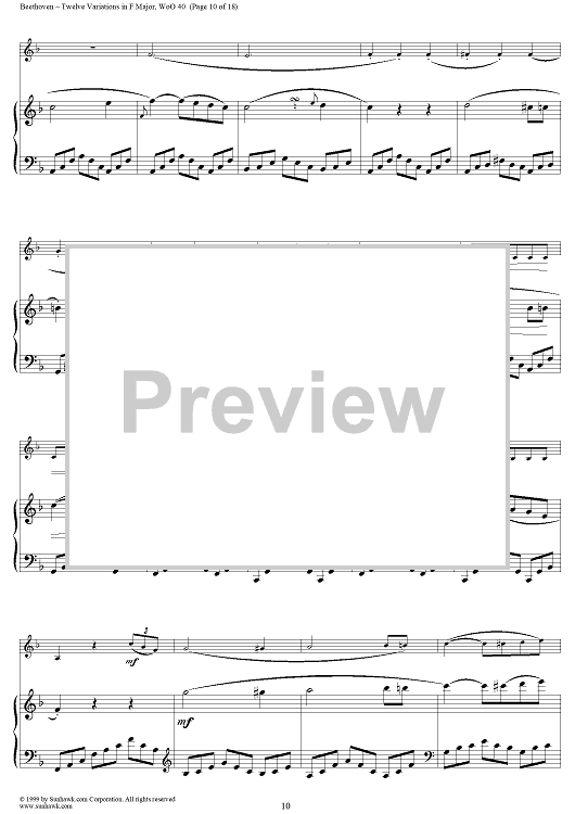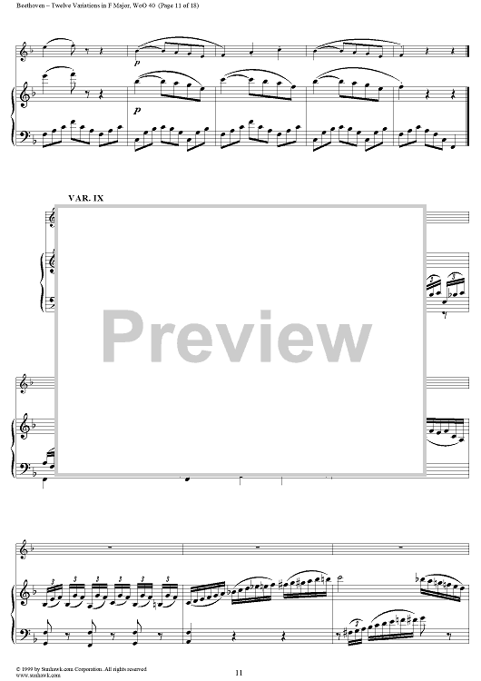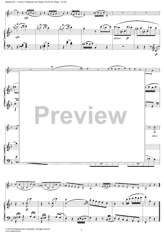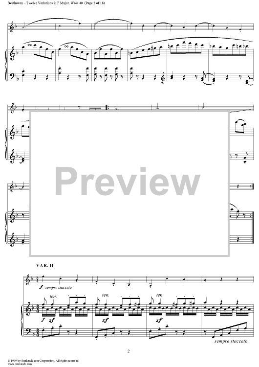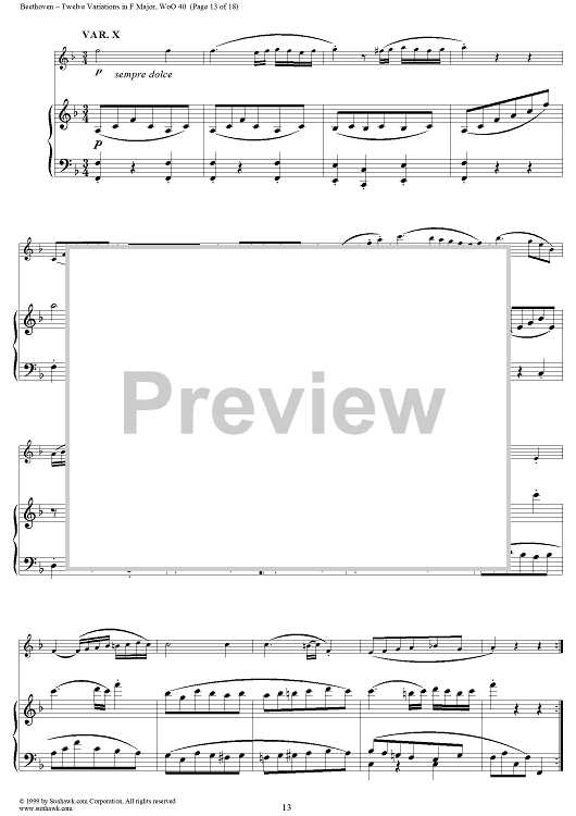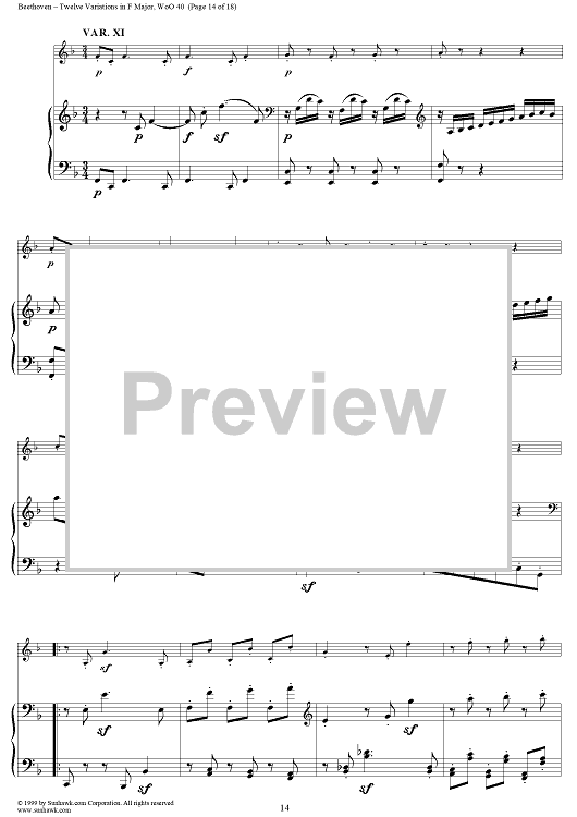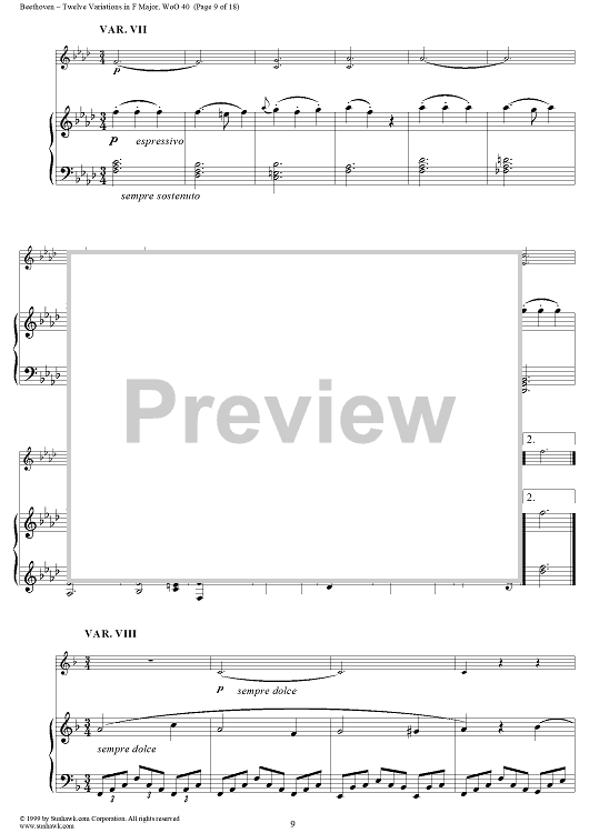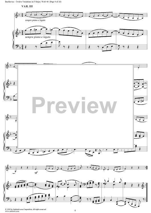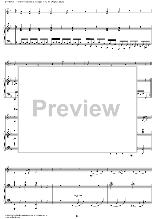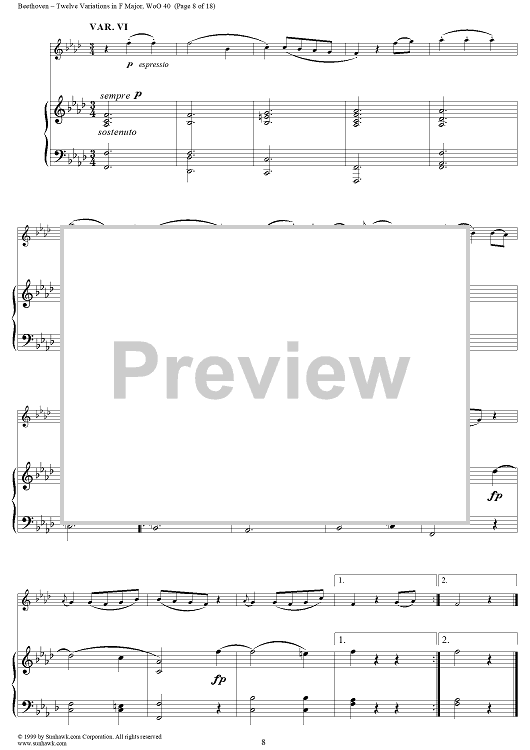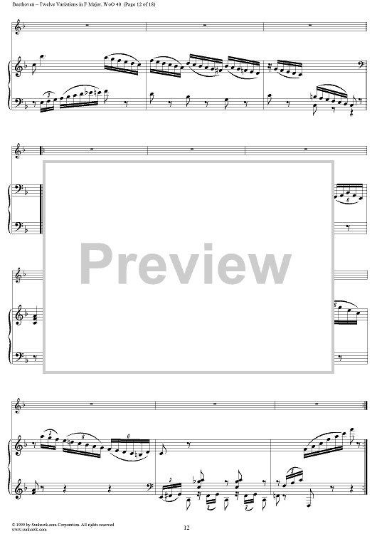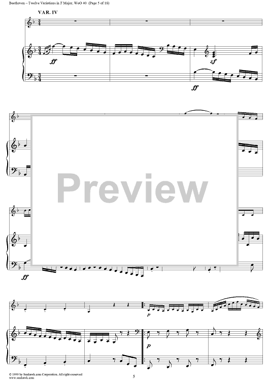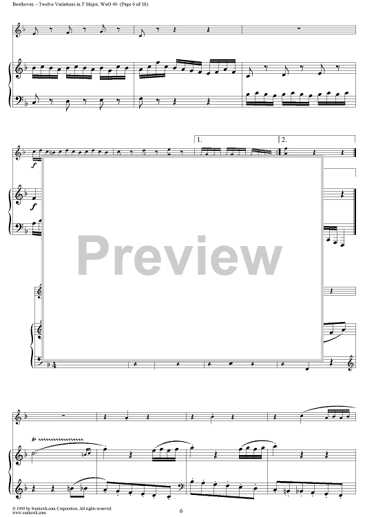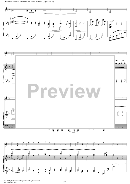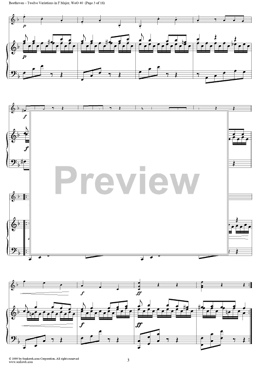 Digital Sheet Music for Twelve Variations in F Major - Piano Score by Ludwig van Beethoven scored for Violin/Piano; id:253656
