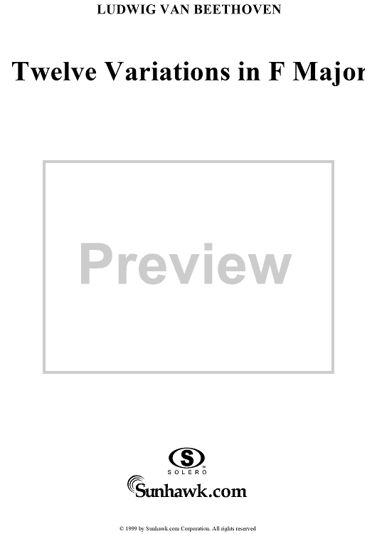 "Twelve Variations in F Major - Piano Score" Sheet Music by Ludwig van Beethoven
