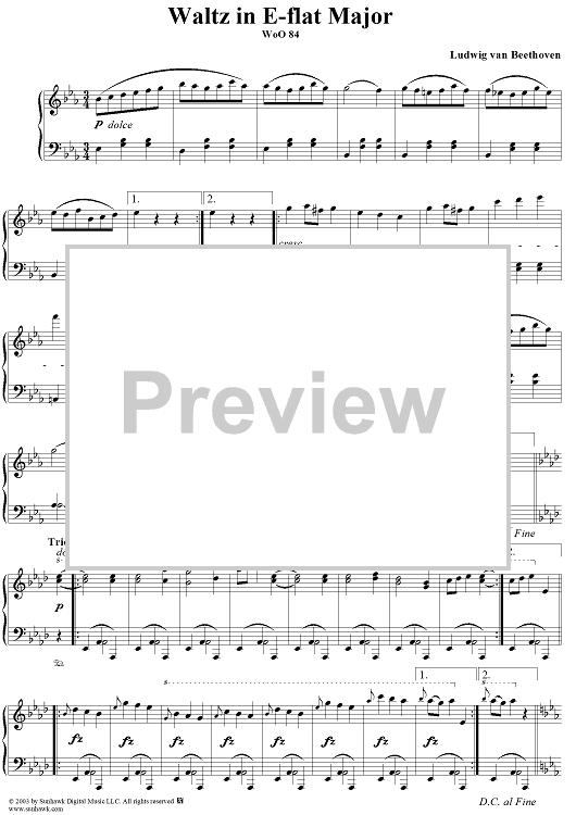 Digital Sheet Music for Waltz in E-flat Major, WoO 84 by Ludwig van Beethoven scored for Piano Solo; id:267780
