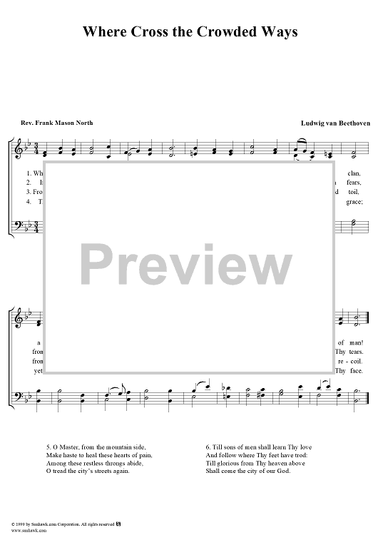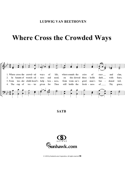 Digital Sheet Music for Where Cross the Crowded Ways by Ludwig van Beethoven scored for Four-part Mixed Chorus; id:271574