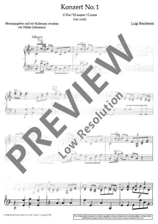 "Concerto No. 1 C Major - Piano Score and Solo Part" Sheet Music by Luigi Boccherini