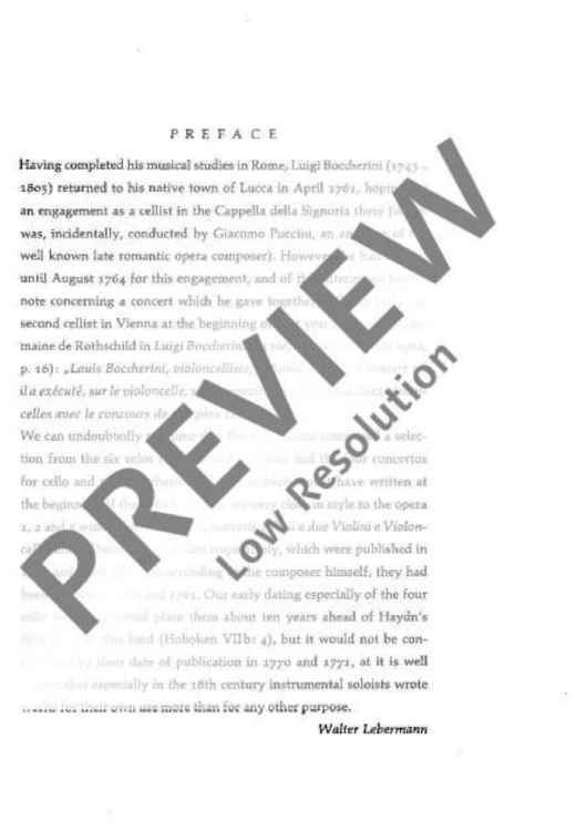 Boccherini, one of the greatest violoncellists of the 18th century, left numerous concertos for his favourite instrument. In the very first of these works, the personal style of the composer is unmistakable. Transparency and classical sense of form, easily remembered melody, in which the tendency of Boccherini towards brilliant form is at once recognizable, as well as the masterly, perfect compositional technique are some of the most important features of his art. The edition is part of the ABRSM syllabus (grade 8)