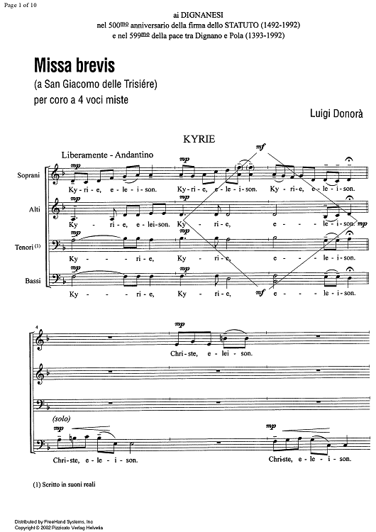 Digital Sheet Music for Missa brevis by , Luigi Donorà scored for SATB Choir; id:343448