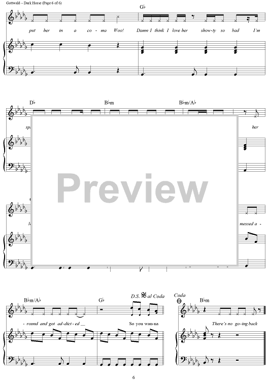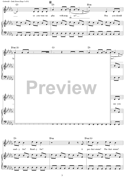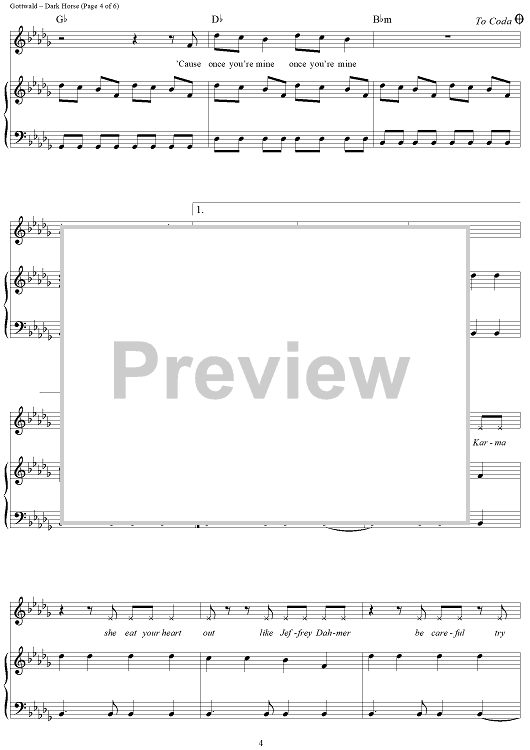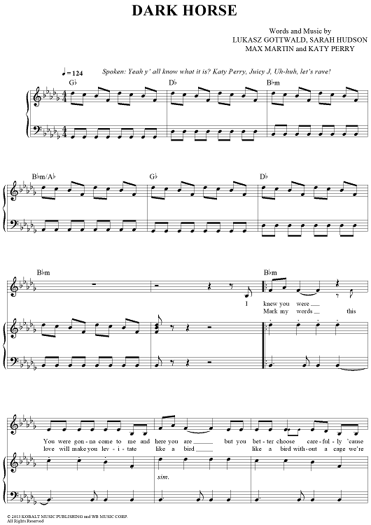 Digital Sheet Music for Dark Horse by Max Martin, Katy Perry, Lukasz Gottwald, Sarah Hudson scored for Piano/Vocal/Chords; id:438036