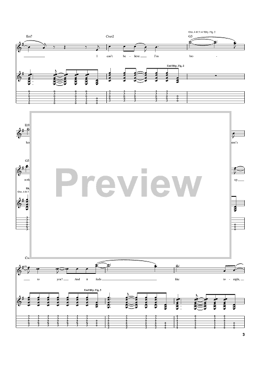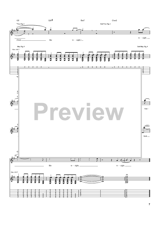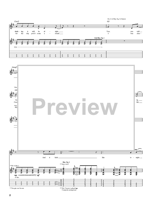 Digital Sheet Music for Feels Like Tonight by Martin Sandberg, Daughtry, Shep Solomon, Lukasz Gottwald scored for Guitar Tab; id:401053
