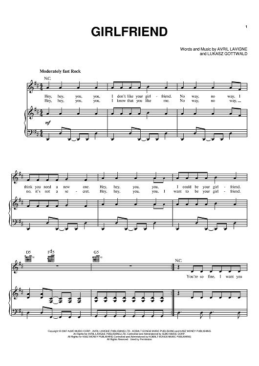 Digital Sheet Music for Girlfriend by Avril Lavigne, Lukasz Gottwald scored for Piano/Vocal/Chords; id:396726