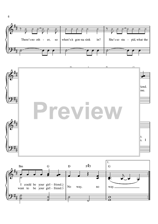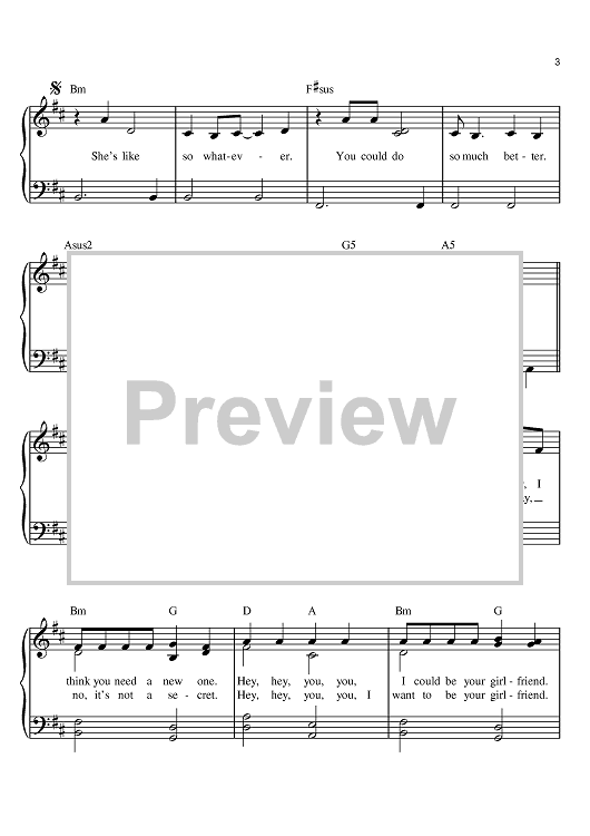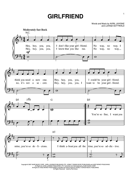 Digital Sheet Music for Girlfriend by Avril Lavigne, Lukasz Gottwald scored for Easy Piano; id:398423