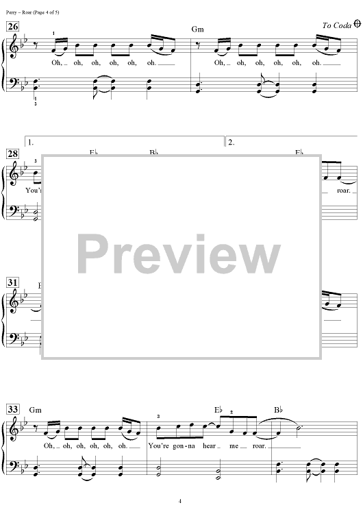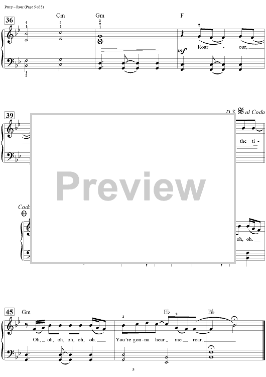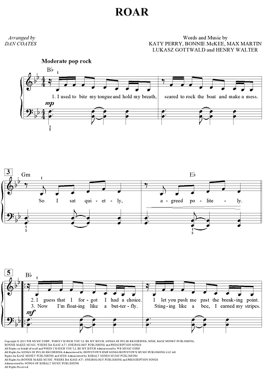 Digital Sheet Music for Roar by Dan Coates, Max Martin, Katy Perry, Lukasz Gottwald, Bonnie McKee scored for Easy Piano/Vocal/Chords; id:453456