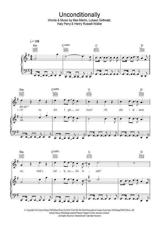 Digital Sheet Music for Unconditionally by Max Martin, Katy Perry, Lukasz Gottwald, Henry Russell Walter scored for Piano/Vocal/Chords; id:438501