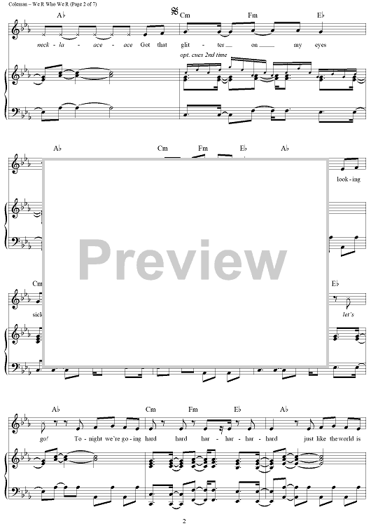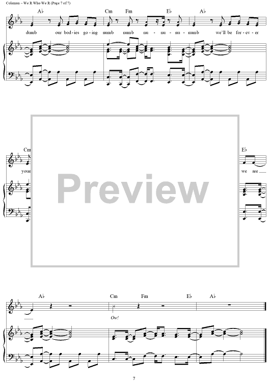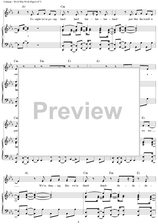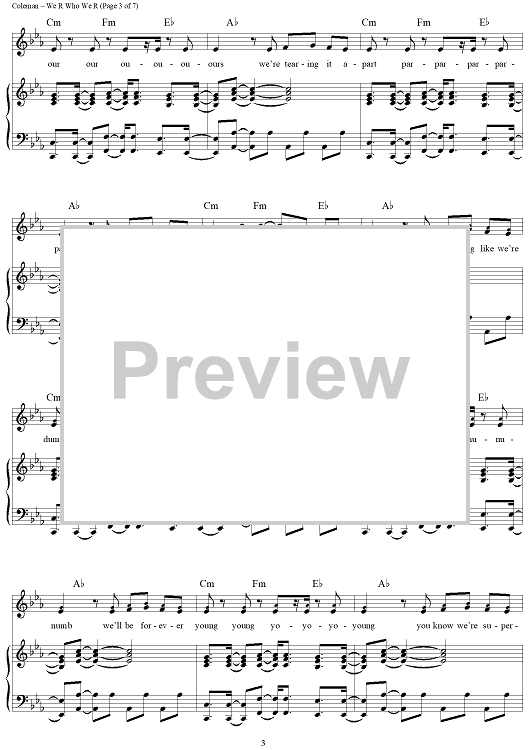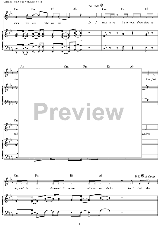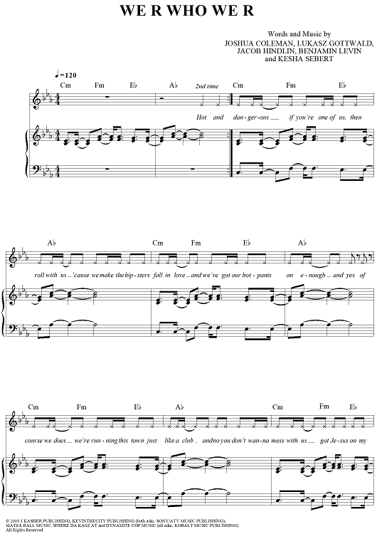Digital Sheet Music for We R Who We R by Kesha, Benjamin Levin, Kesha Sebert, Lukasz Gottwald, Ammo, Jacob Hindlin scored for Piano/Vocal/Chords; id:417969