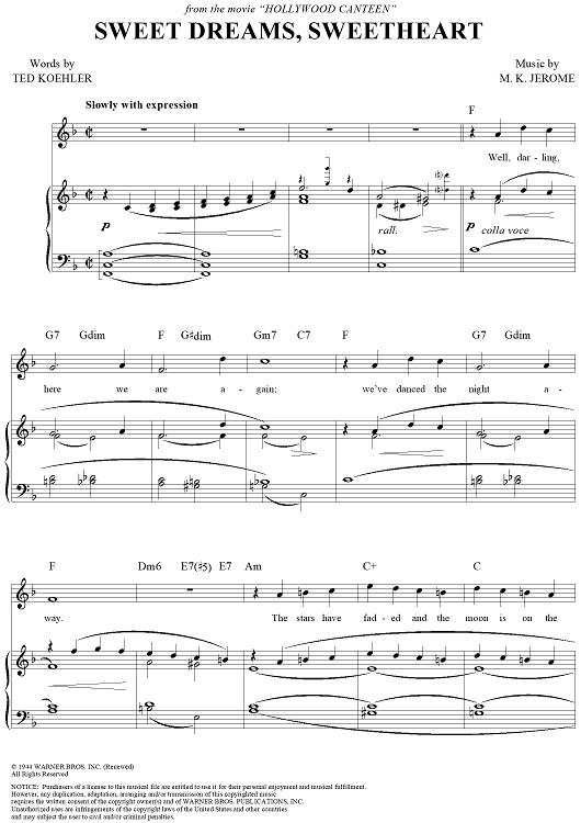 Digital Sheet Music for Sweet Dreams, Sweetheart by Ted Koehler, M. K. Jerome scored for Piano/Vocal/Chords; id:241782