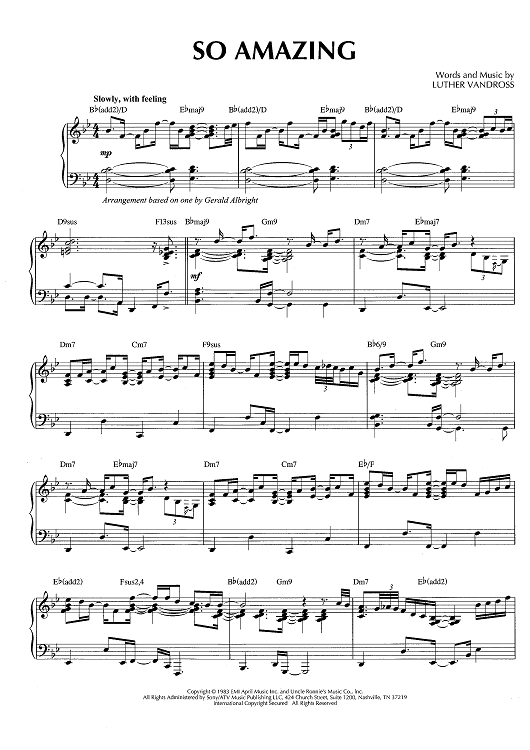 Digital Sheet Music for So Amazing by Luther Vandross, Brent Edstrom scored for Piano Solo; id:466321